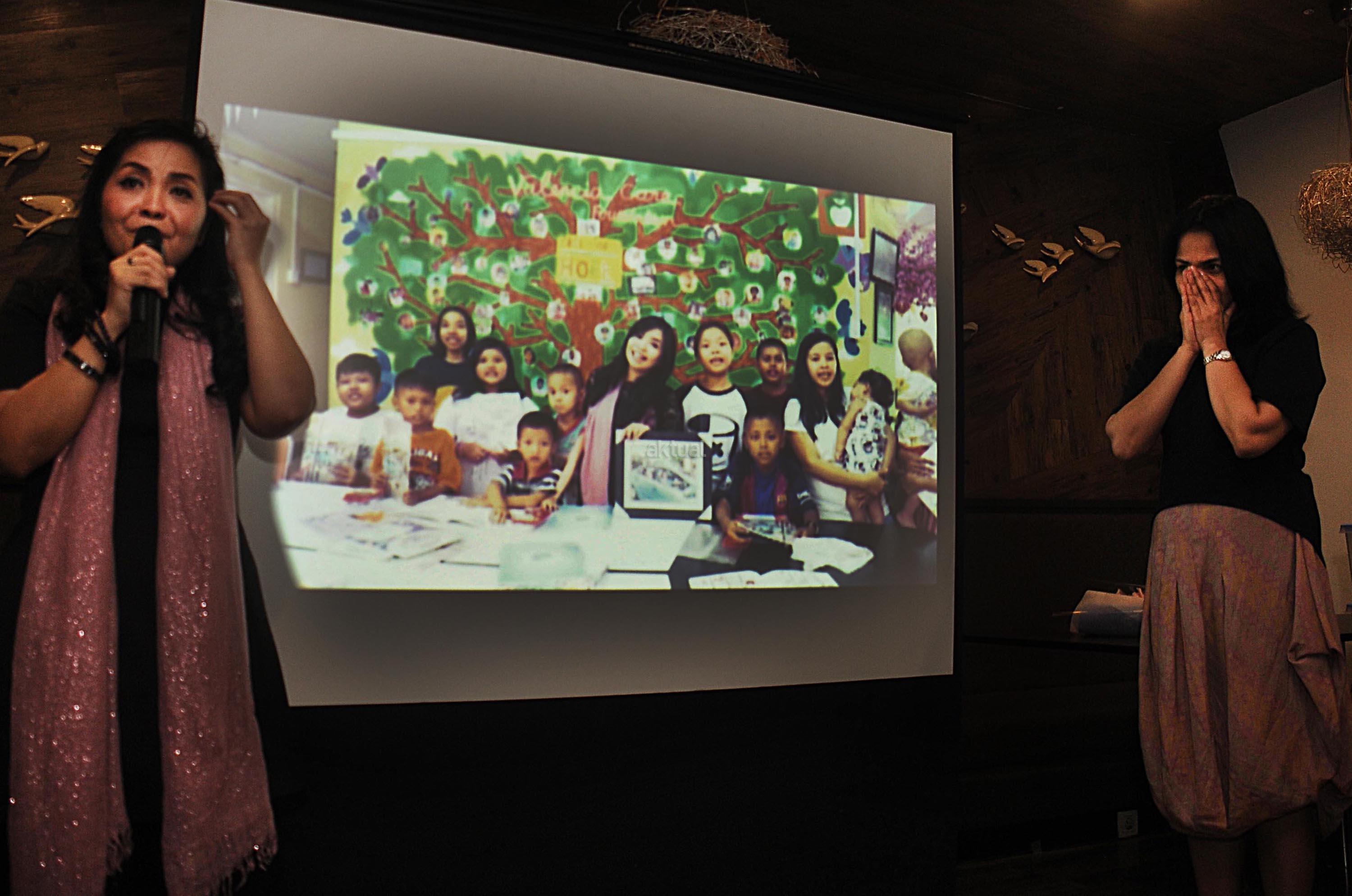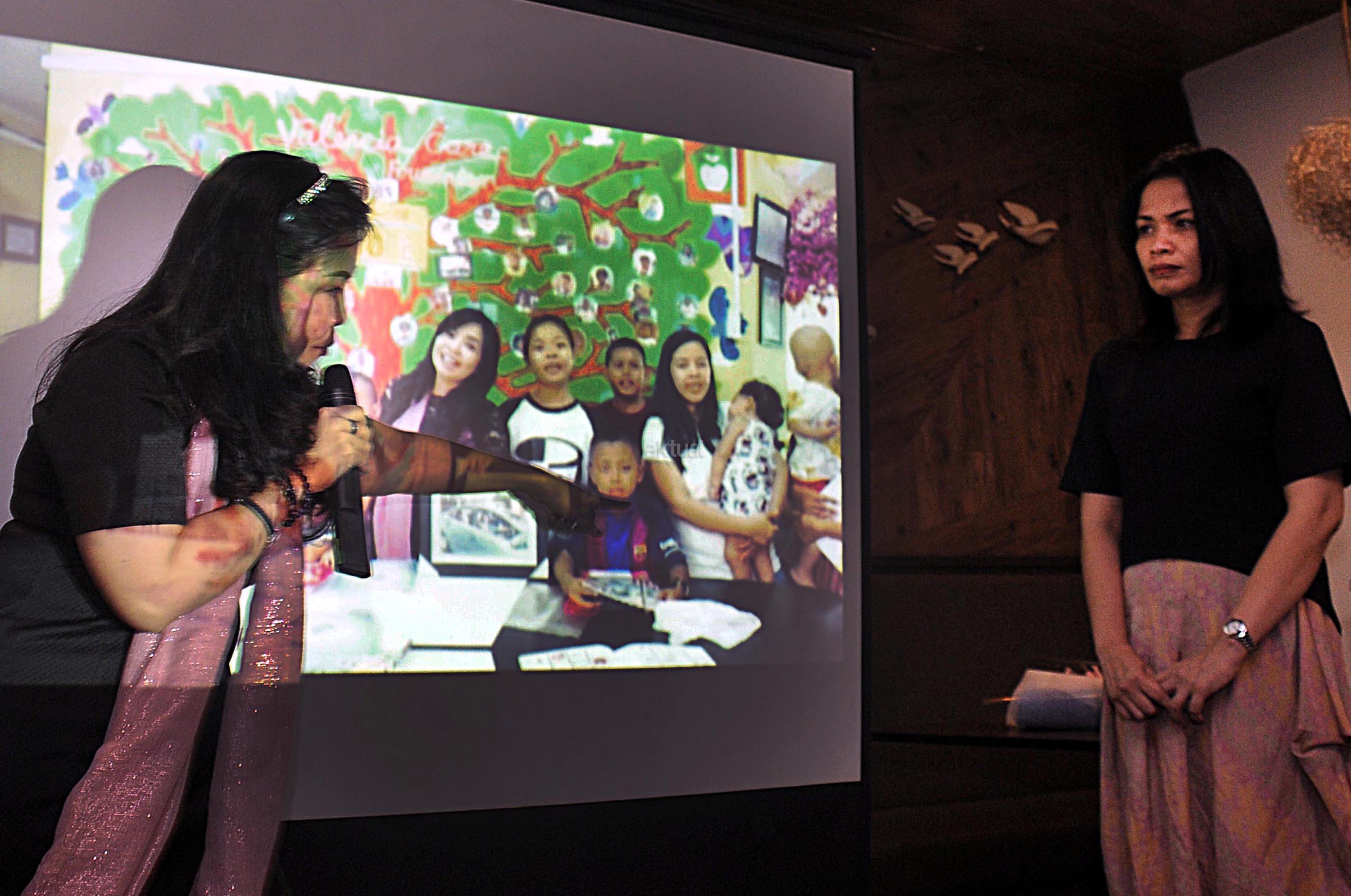 Mieke Randa Founder Rumah Singgah Harapan Valencia (kiri) didampingi Direktur Marketing PT. Blue Bird Tbk. Amelia Nasution (kanan) memberikan penjelasan terkait anak-anak penderita kanker yang telah diberikan bantuan oleh PT. Blue Bird Tbk. saat acara Buka Puasa bersama PT. Blue Bird Tbk. dengan para awak media di Jakarta, Rabu(21/6/2017). Pada kesempatan ini juga Blue Bird juga memberikan bingkisan kepada pengemudi Blue Bird yang telah menunaikan Ibadah Umroh dengan biaya perusahaan. AKTUAL/Munzir