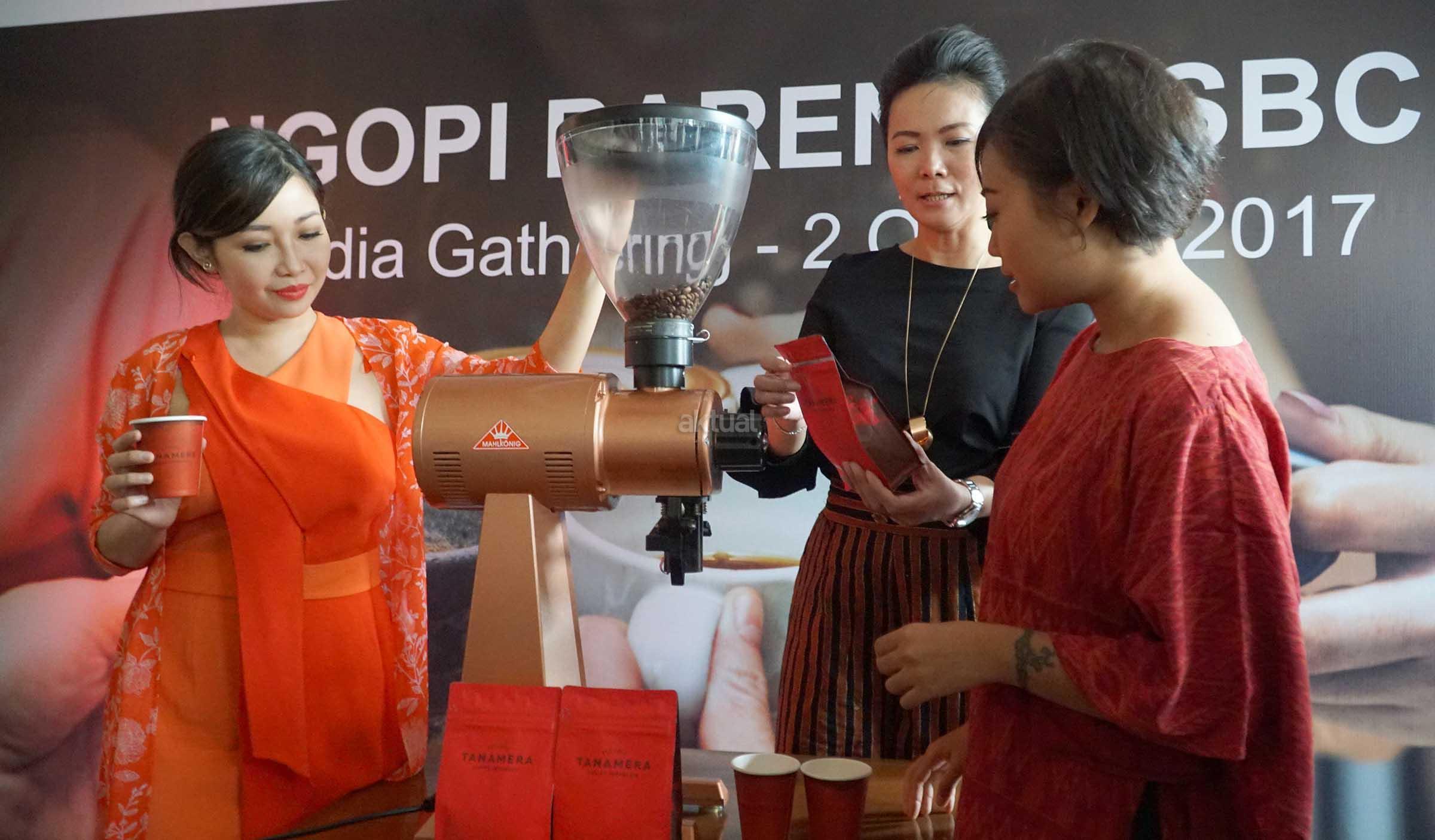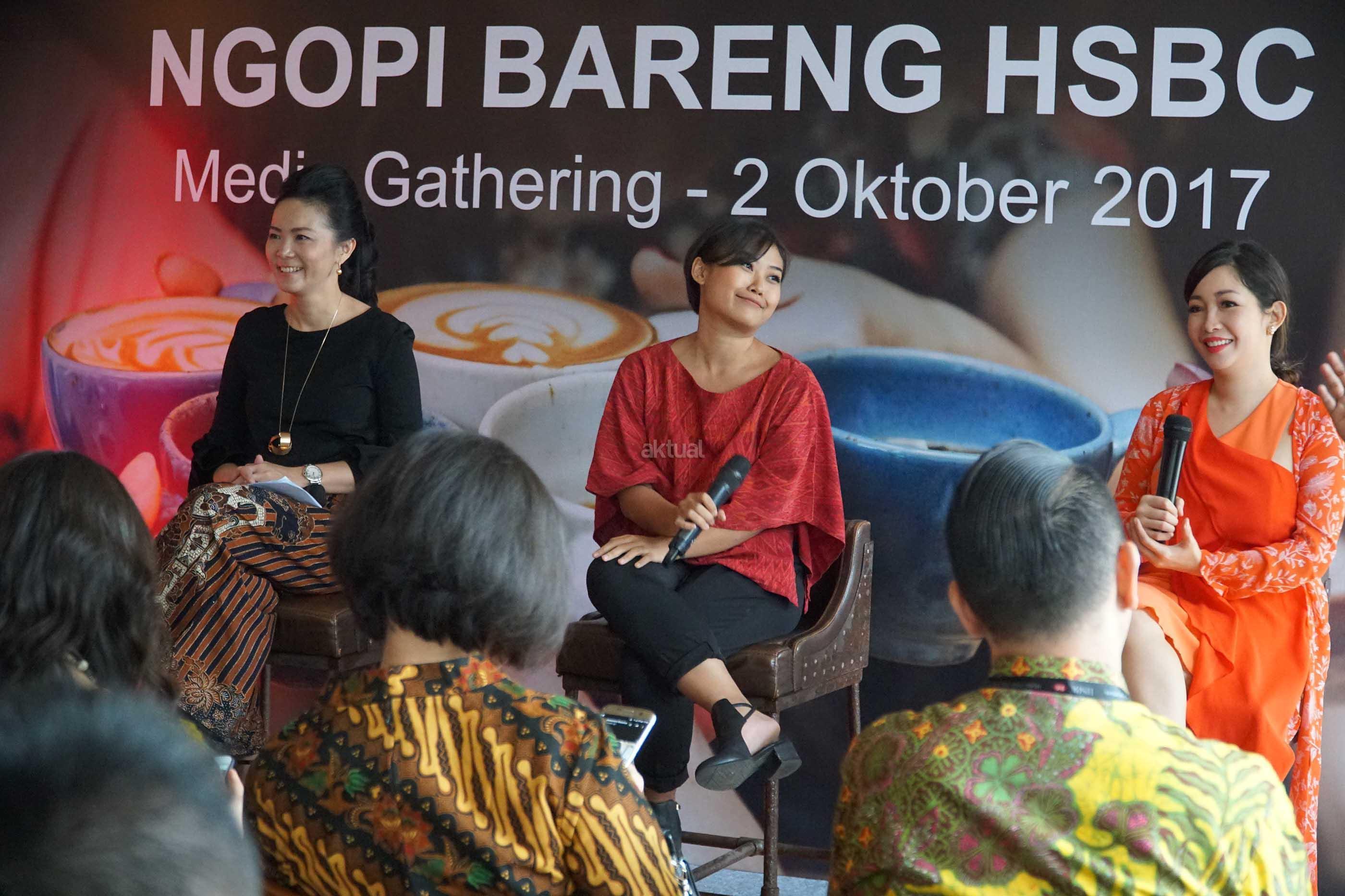 (dari kiri ke kanan) Senior VP Retail Banking & Wealth Management PT Bank HSBC Indonesia, Dewi Tuegeh, Corporate Communications & Social Responsibility Tanamera Coffee, Anindita Sekar Putri, Chef selebriti, Rinrin Marinka saat menjadi narasumber pada media gathering program Coffe Month di Jakarta, Senin (2/10). HSBC bermitra bersama 36 gerai kopi brand terkemuka menghadirkan program di bulan Oktober guna mendukung gaya hidup produktif kalangan urban yang dikenal memiliki mobilitas tinggi. Program Coffee Month adalah program bagi pengguna kartu kredit HSBC untuk mendapatkan diskon 50% setiap pemesanan menu kedua dan kelipatannya dengan menggunakan kartu kredit HSBC jenis apapun. AKTUAL/Eko S Hilman