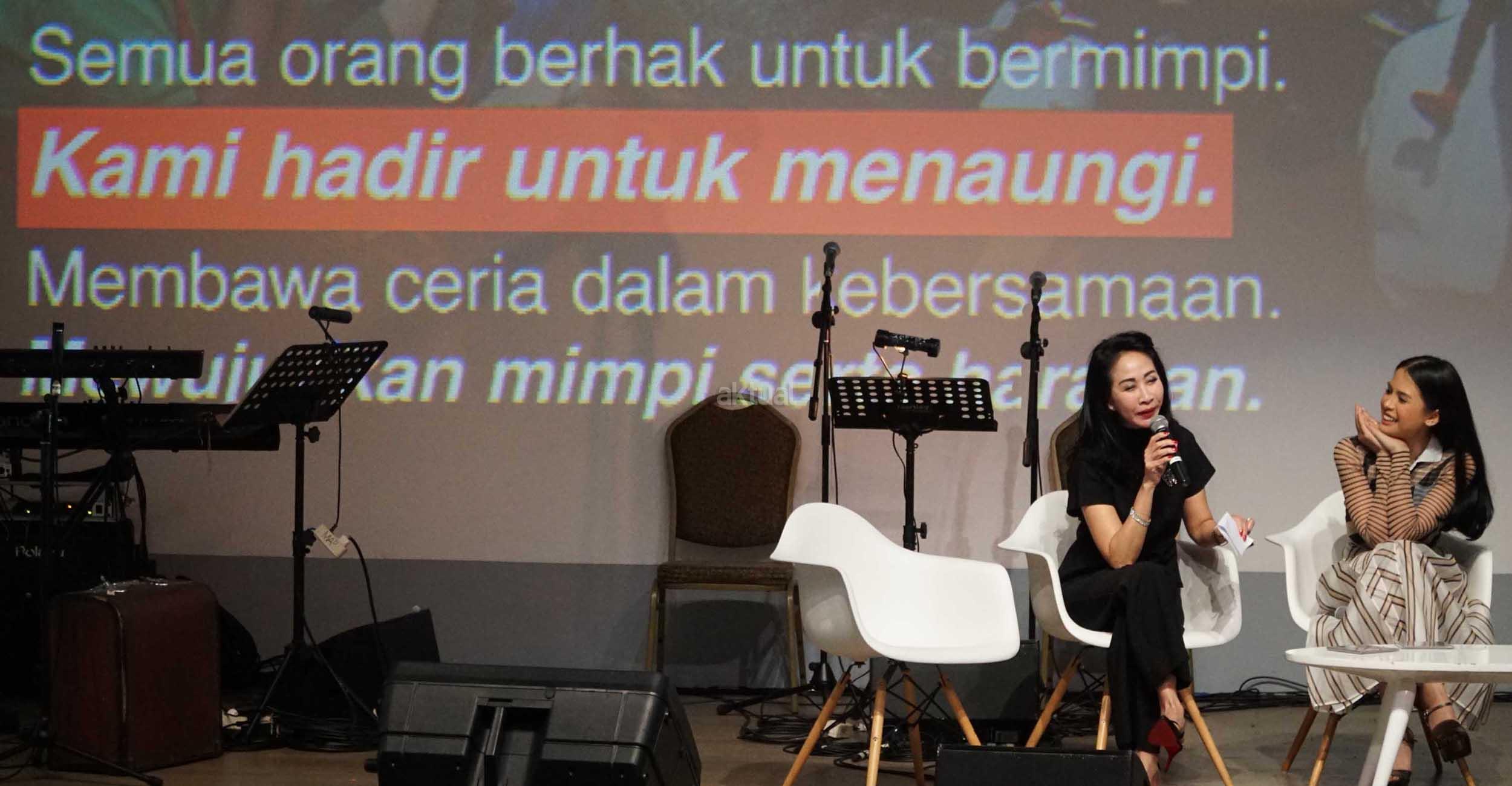 Direktur Compliance, Corporate Secretary, and legal CIMB Niaga Fransisca Oei (kiri) bersama Artis dan Co- Founder Gerakan #KejarMimpi, Maudy Ayunda saat jumpa pers peluncuran album barunya bertajuk “Oxygen” di Jakarta, Kamis (15/2). CIMB Niaga melalui gerakan #KejarMimpi mendukung artis dan penyanyi muda Maudy Ayunda mengejar mimpinya untuk membuat album produksi sendiri yang terinspirasi dari gerakan #KejarMimpi. Melalui peluncuran album ini, CIMB Niaga mengajak generasi muda Indonesia menjadi pribadi yang positif dan selalu bersemangat mewujudkan mimpinya untuk membangun Indonesia yang lebih baik. Album “Oxygen” adalah karya istimewa bagi Maudy Ayunda, dalam album ini dia tidak hanya berperan jadi penyanyi, tapi untuk pertama kalinya menjadi seorang produser musik. AKTUAL/Eko S Hilman