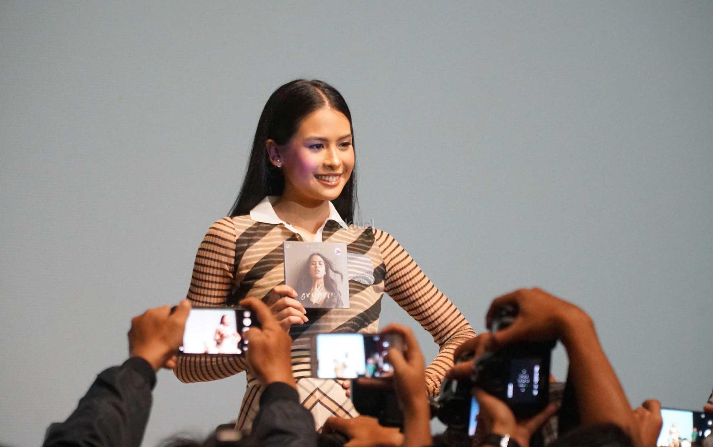 Artis dan penyanyi Maudy Ayunda berpose saat konferensi pers peluncuran album bertajuk Oxygen, di Jakarta, Kamis (15/2). CIMB Niaga mendukung peluncuran album tersebut melalui gerakan #KejarMimpi yakni, gerakan sosial untuk membentuk generasi muda dalam menerapkan nilai hidup yang kokoh melalui pengembangan serta pengendalian diri yang baik, sehingga mampu memberikan nilai baru yang dapat memajukan Indonesia. Album “Oxygen” adalah karya istimewa bagi Maudy Ayunda, dalam album ini dia tidak hanya berperan jadi penyanyi, tapi untuk pertama kalinya menjadi seorang produser musik. AKTUAL/Eko S Hilman