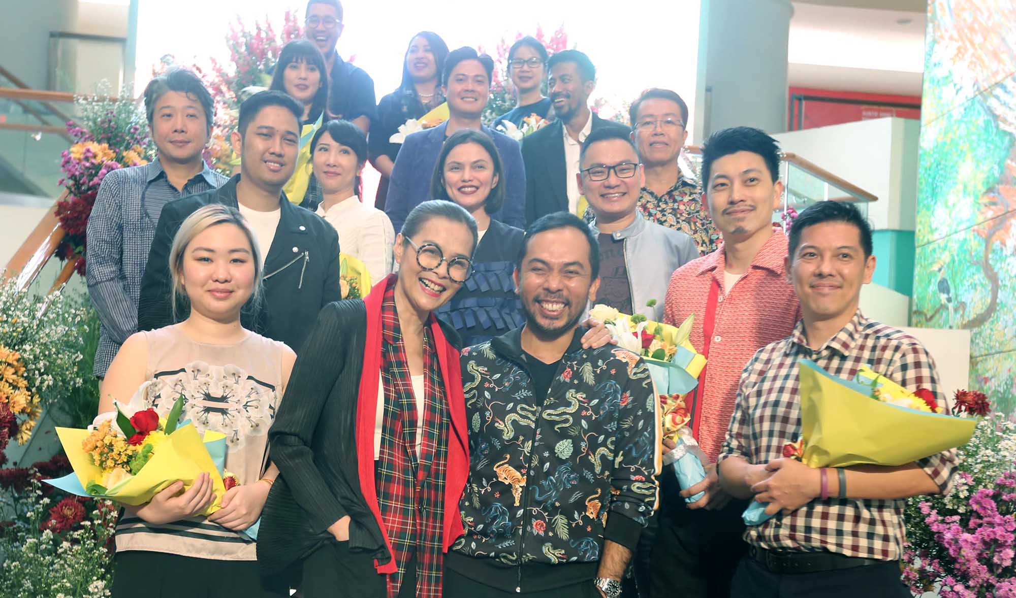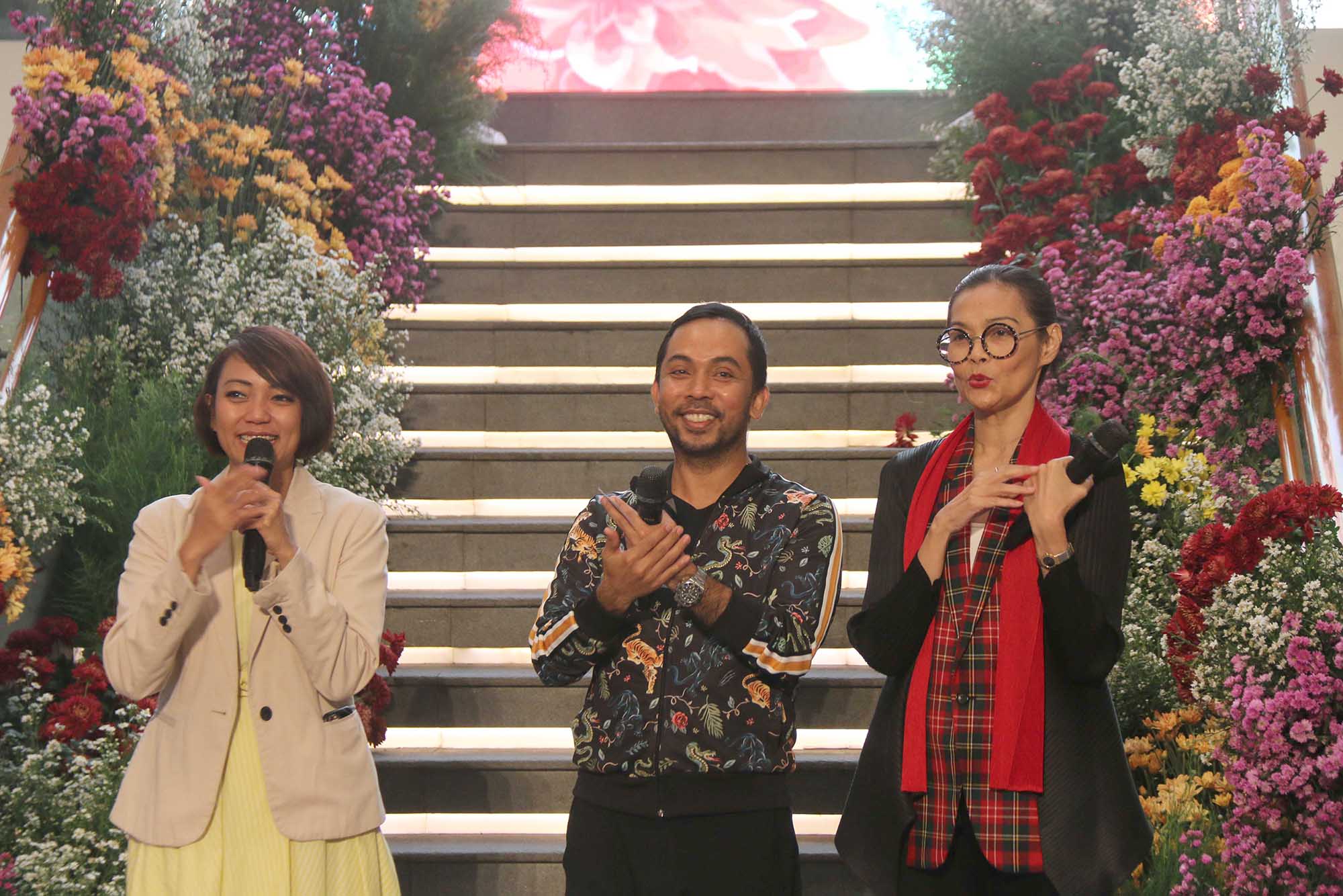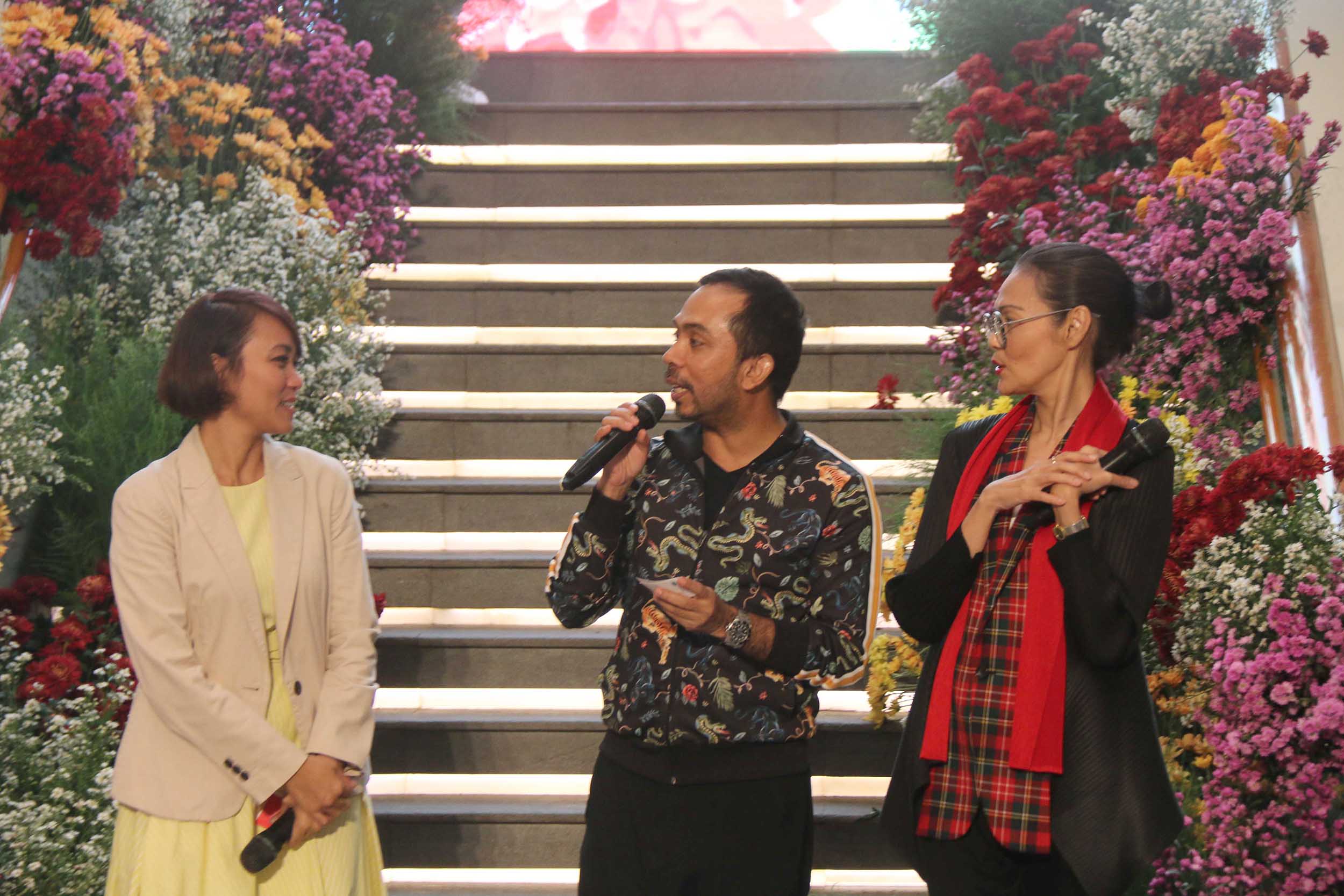 Astri Abyanti Permatasuri General Marketing & Leasing Level 4,5,6 PT Plaza Indonesia Realty Tbk, Zamri Mamat, General Manager Marketing PT Plaza Indonesia Realty Tbk, Ria Juwita, Senior Manager Event & Promotions, and Creative Services PT Plaza Indonesia Realty Tbk bersama para desainer saat Selebrasi 28 Plaza Indonesia di Jakarta (1/3). AKTUAL/Eko S Hilman