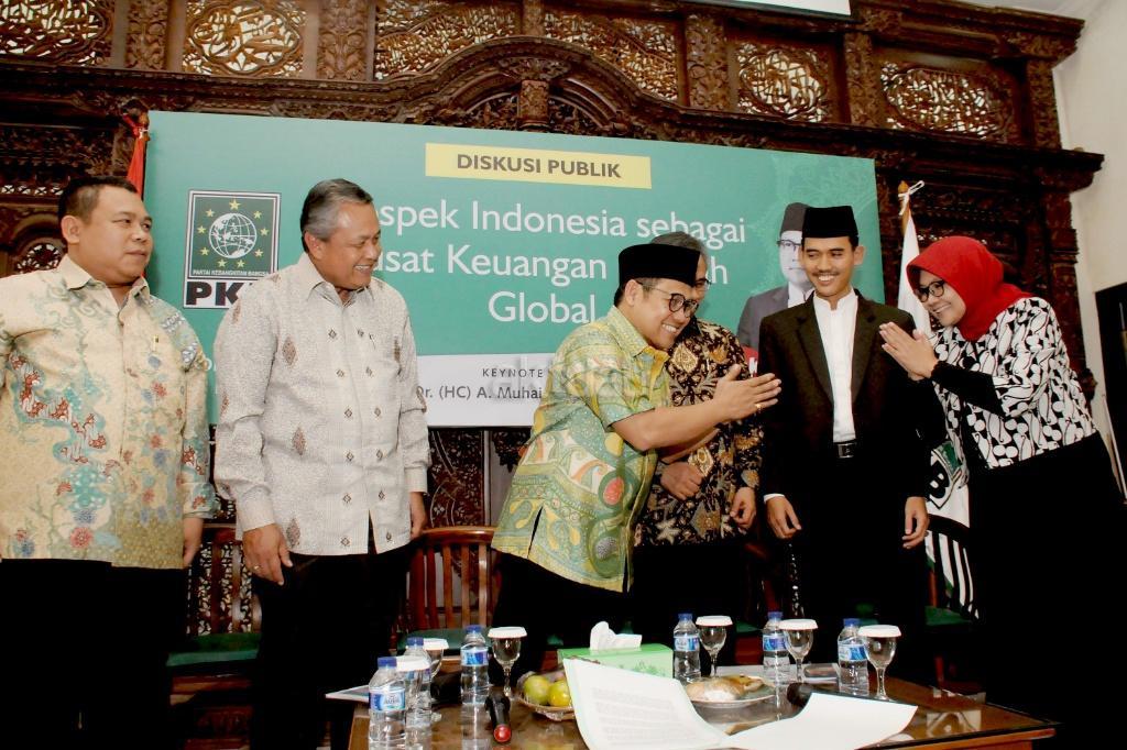 Diskusi publik tersebut membahas mengenai perkembangan keuangan syariah di Indonesia dengan tema ‘Prospek Indonesia Sebagai Pusat Keuangan Syariah Global’. AKTUAL/Munzir