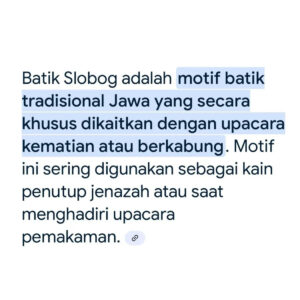 “Motif slobog melambangkan keikhlasan dan doa agar jalan yang ditinggalkan lapang. Saya mengenakannya sebagai simbol duka, sekaligus bentuk protes diam,” tulis Gustika.