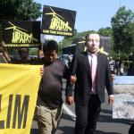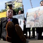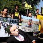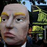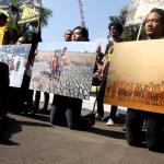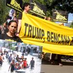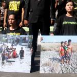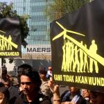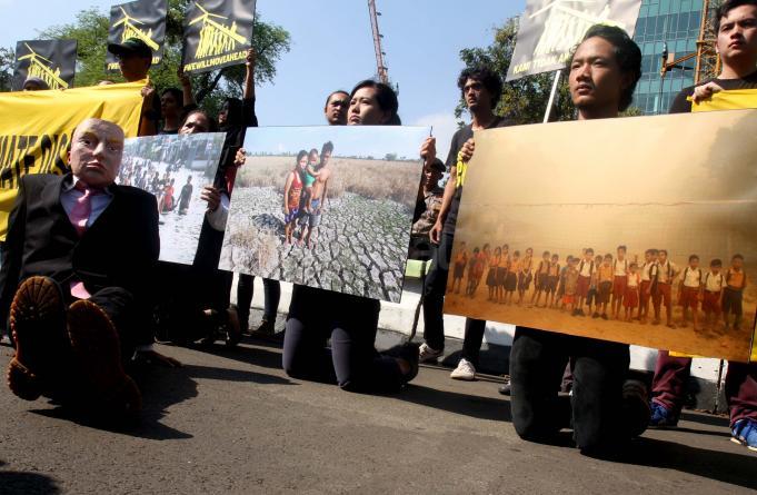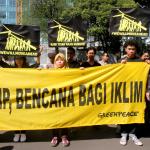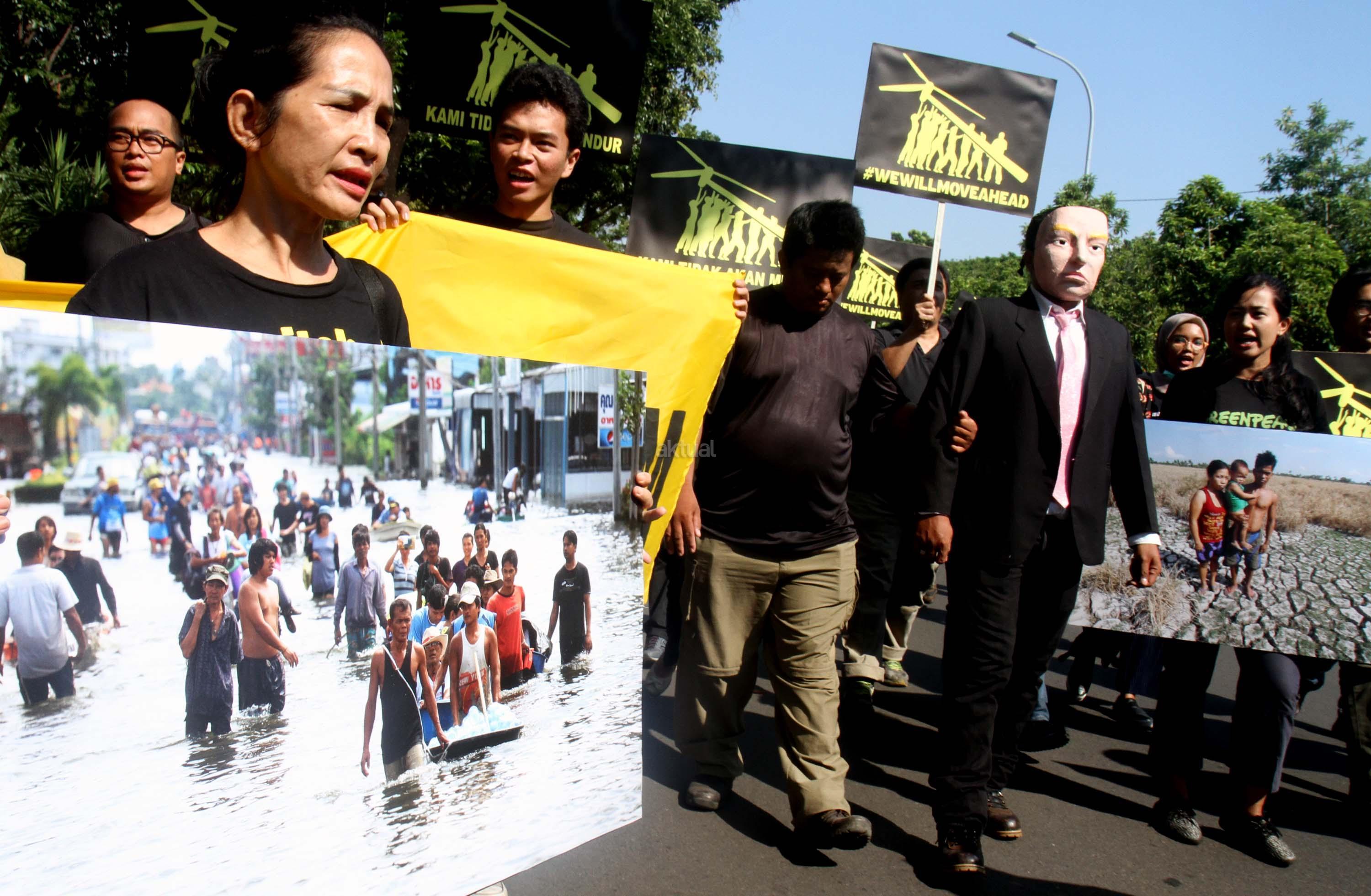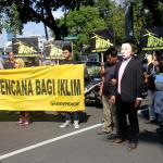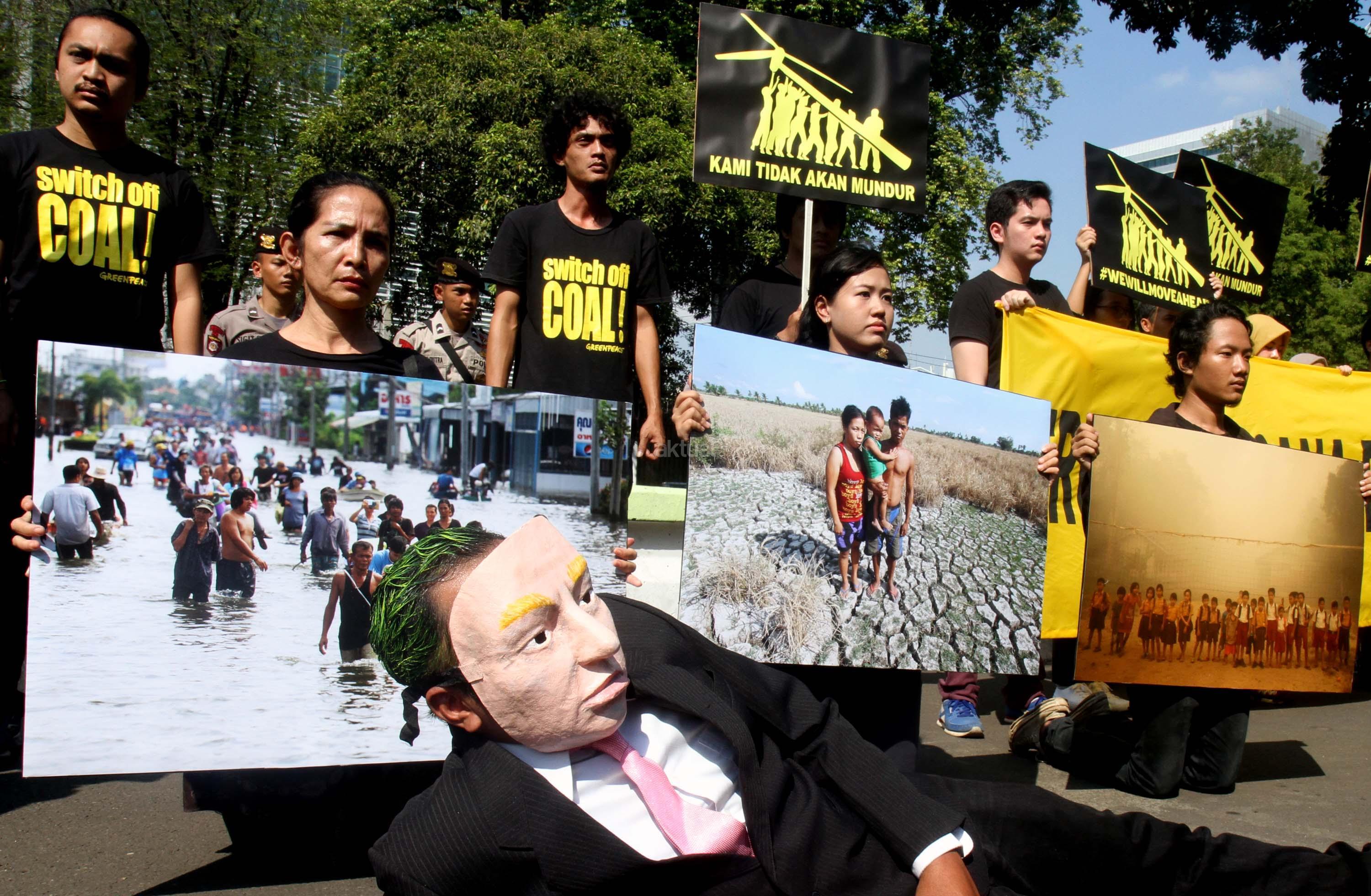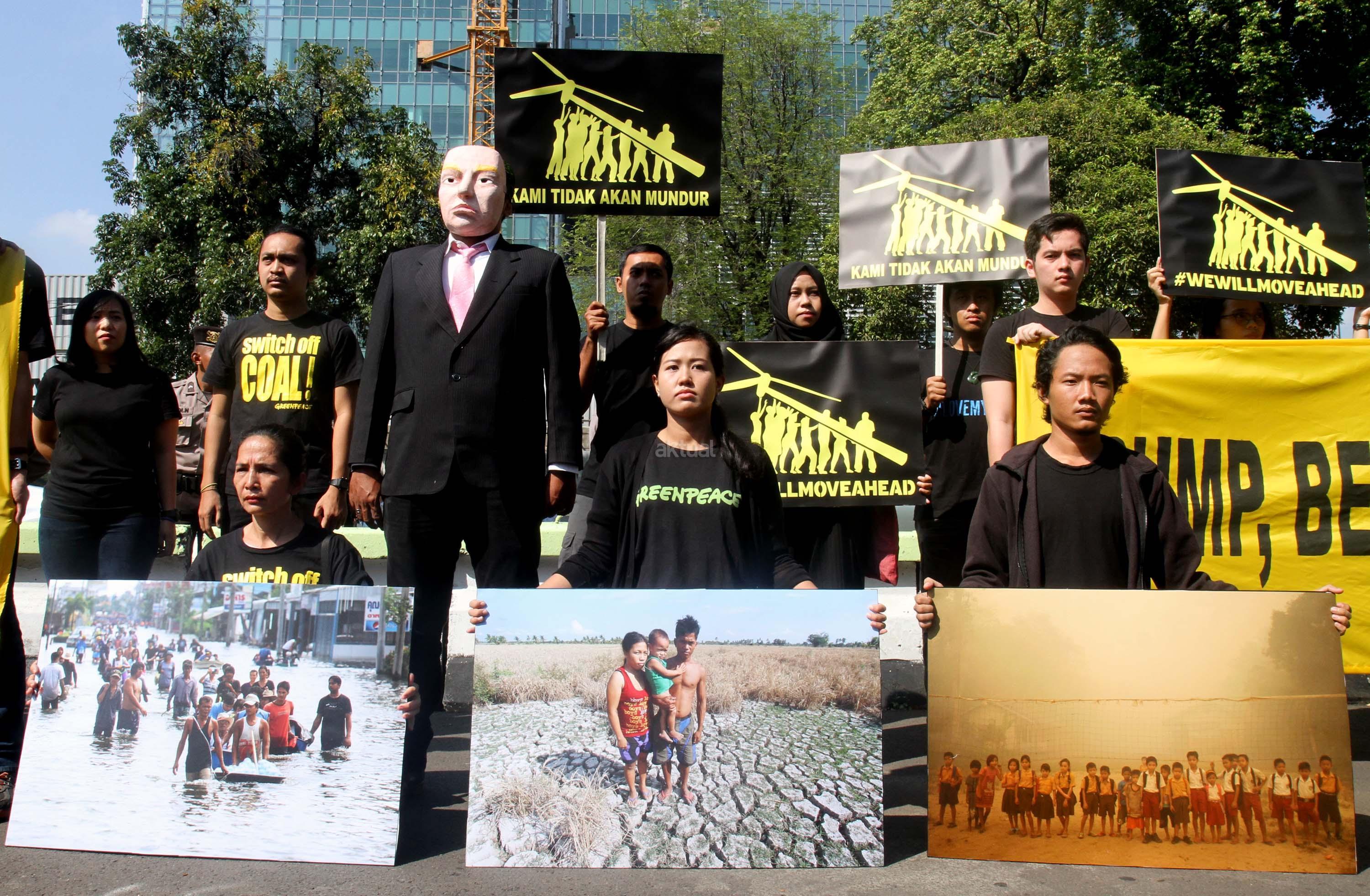 Aktivis Greenpeace Indonesia berunjuk rasa di depan Kedutaan Besar Amerika Serikat, Jakarta, Rabu (7/6/2017). Mereka memprotes kebijakan Presiden Donald Trump yang menyatakan Amerika Serikat mundur dari Perjanjian Paris.