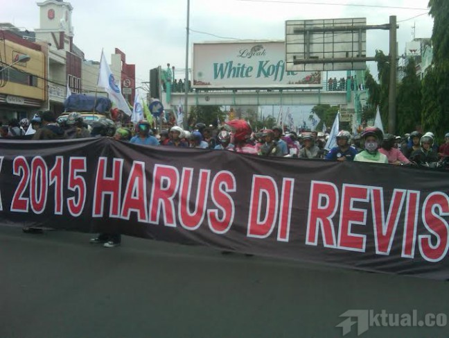 Mereka bersikukuh keras supaya Gubernur Jateng merevisi kembali UMK dari rata-rata penetapan UMK tahun 2015 yang naik menjadi 20 persen dari sebelumnya.