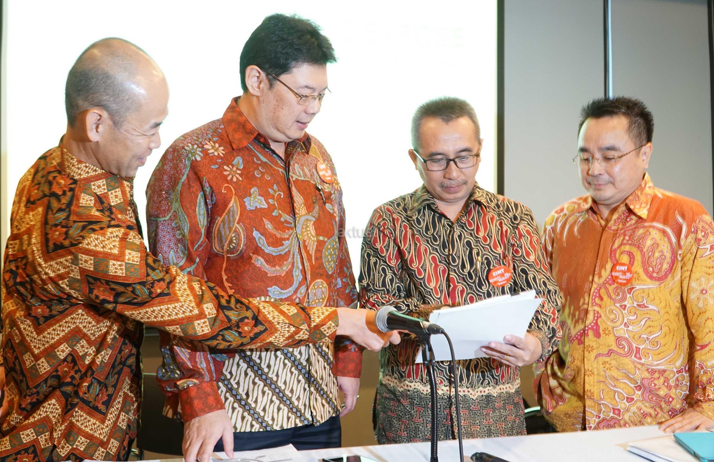 Dari kiri ke kanan, Direktur PT Chitose International Tbk (CINT) Kazuhiko Aminaka, Presiden Direktur CINT Dedie Suherlan, Direktur Fadjar Swatyas, Direktur, Timatius Jusuf Paulus berbincang usai paparan penilaian kinerja atas tahun buku 2016 dan RUPS Tahunan di Jakarta, Rabu (26/4). Perusahaan yang menjual dan memproduksi Steel Furniture & Nursing Bed saat ini memiliki kapasitas terpasang Chitose sebesar 1.500.000 unit per tahun dan semua produk chitose telah memenuhi kualitas standarisasi seperti SNI dan menerapkan sistem manajemen mutu. Sementara dari hasil yang telah dicapai, perseroan membagikan dividen tunai sebesar Rp 5/saham equivalen dengan Rp 5 miliar atau 24,25% dari Net Profit After Tax. AKTUAL/Eko S Hilman
