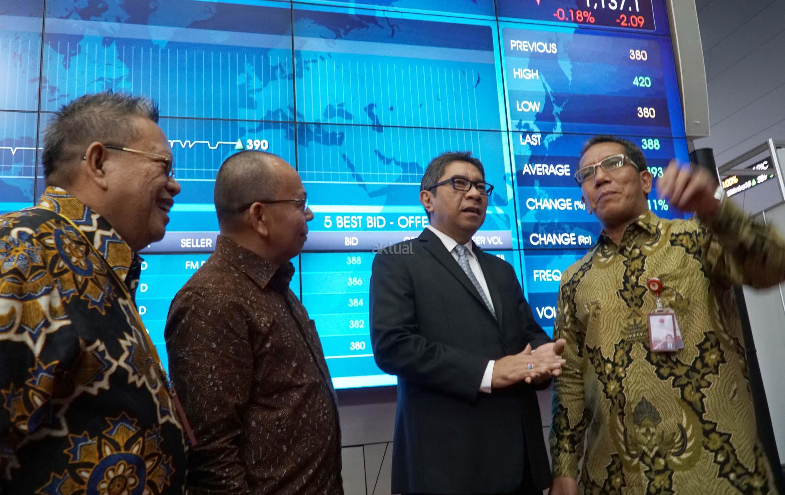 (dari kiri ke kanan) Direktur Keuangan dan SDM Bursa Efek Indonesia, Chaerudin Berlian, Direktur Utama PT Jasa Armada Indonesia Tbk, Dawam Atmosudiro Direktur Utama Pelindo II, Elvyn G Masassya, Direktur penilaian Perusahaan BEI, Samsul Hidayat berbincang disela pencatatan saham JAI di Jakarta, Jumat (22/12). JAI nak usaha PT Pelabuhan Indonesia II (persero) (IPC), telah resmi mencatatkan sahamnya di BEI,Perusahaan yang tercatat dengan kode saham “IPCM” ini telah melepas sejumlah 1,21 miliar lembar saham baru atau setara dengan 23% dari modal ditempatkan dan disetor.JAI resmi menjai emiten ke 36 yang melantai di Bursa pada tahun 2017. JAI bergerak di bidang pemantauan dan penundaan kapal di Pelabuhan milik Negra,terminal swasta (TUKS) dan terminal khusus lepas pantai (oil & Gas Ship to Ship/STS) dibidang usaha sejenis,JAI adalah perusahaan pertama melakukan IPO. AKTUAL/Eko S Hilman