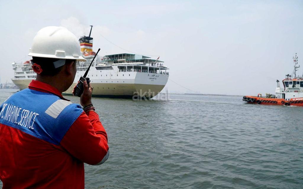 Pengawas sedang memonitor kapal tunda bernama KT Batavia milik PT Jasa Armada Indonesia untuk memandu kapal penumpang bernama Nggapulu asal sulawesi menuju terminal penumpang Pelabuhan Tanjung Priok Jakarta, Rabu (11/10/2017). AKTUAL/Eko S Hilman