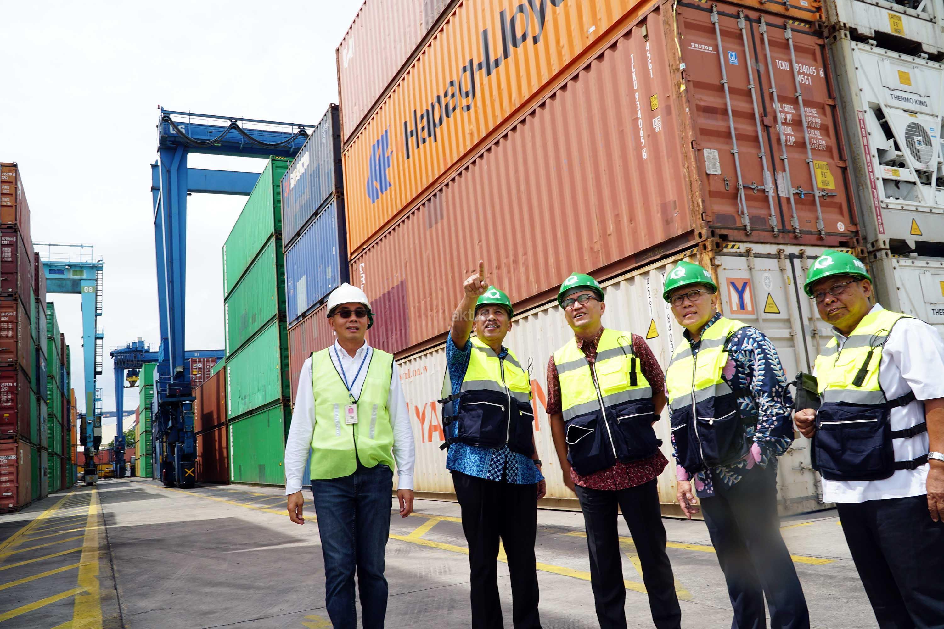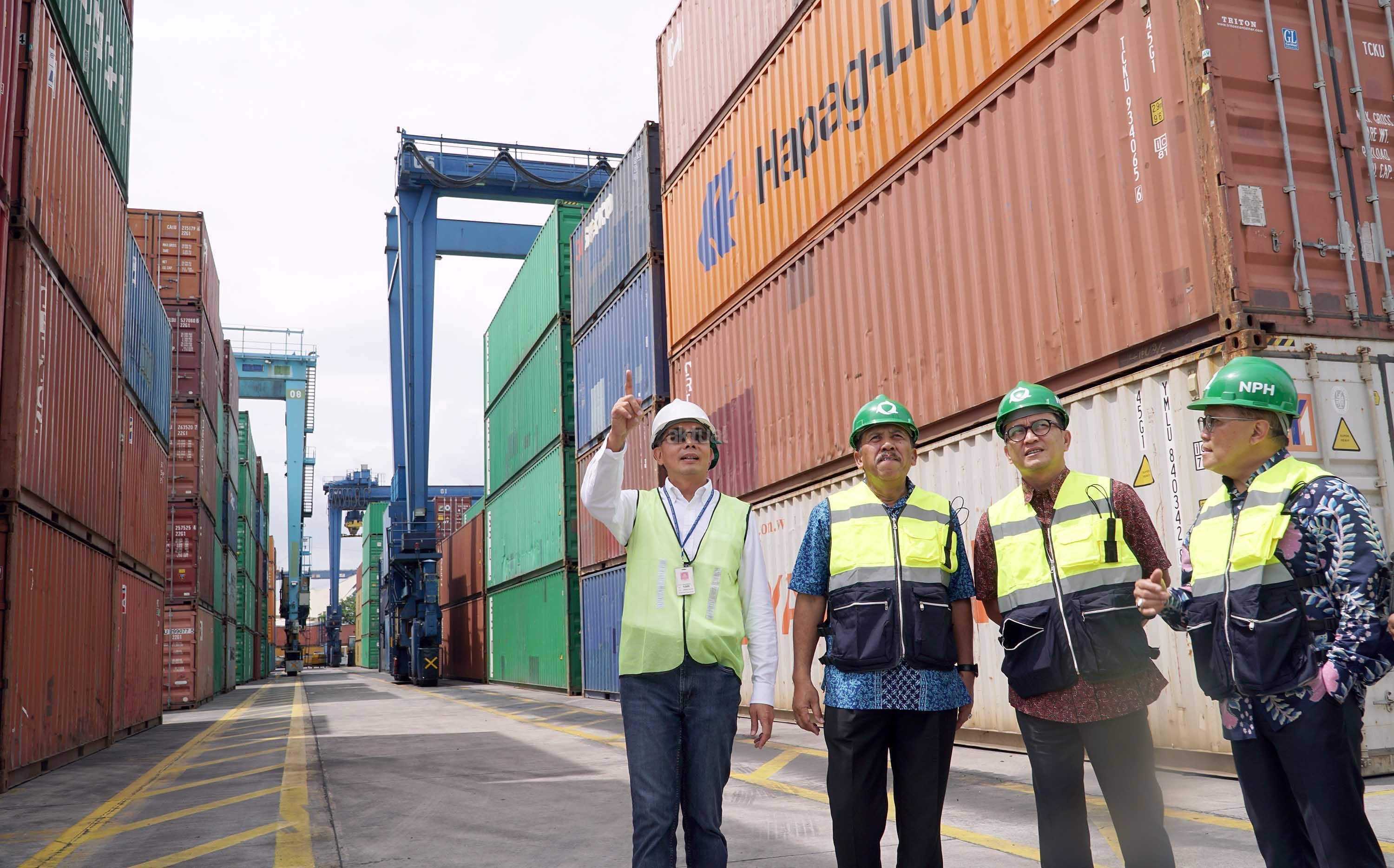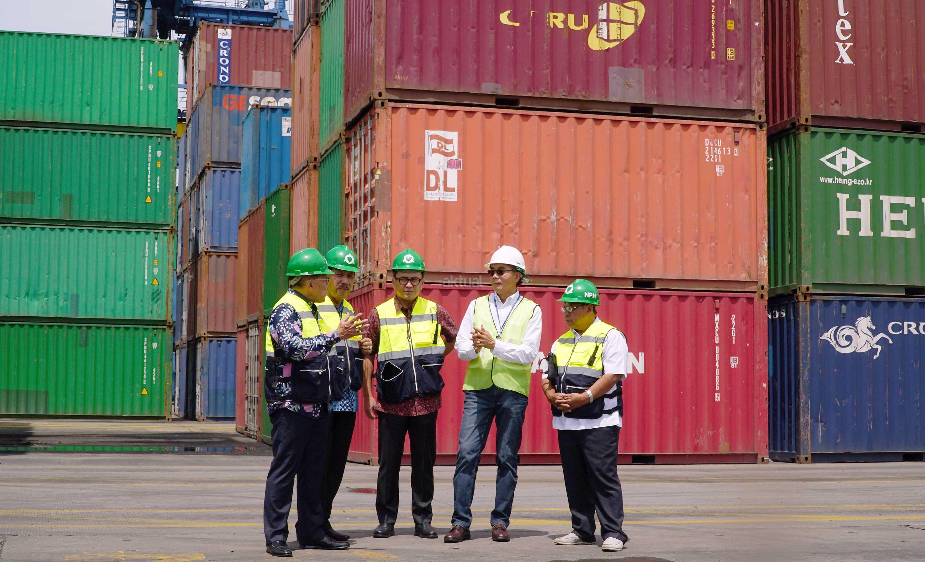 Petugas dan karyawan saat berada di areal PT Nusantara Pelabuhan Handal (NPH), pelabuhan peti kemas,Tanjung Priok,Selasa (7/2). NPH yang mengoperasikan terminal peti kemas dengan kapasitas 600 ribu TEUS pertahun.Direksi dan Komisaris NPH dalam kunjungannya untuk memastikan kegiatan bongkar muat peti kemas berjalan dengan baik, Selain mengoperasikan terminal peti kemas, NPH juga mensupplay peralatan pelabuhan dan jasa perawatan alat pelabuhan,Saat ini NPH sedang mempersiapkan diri untuk IPO dalam waktu dekat. AKTUAL/Eko S Hilman