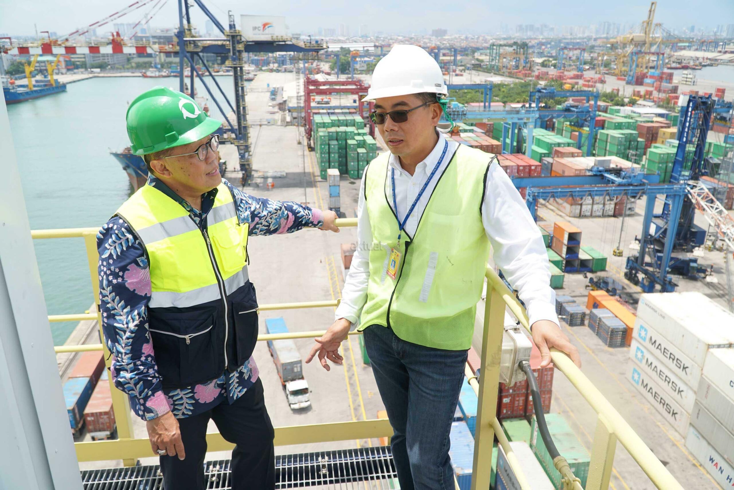 Presiden Direktur PT Nusantara Pelabuhan Handal (NPH),Paul Krisnadi (kanan) berbincang dengan Komisaris, Eddy Kuntadi disela melakukan kunjungan lapangan ke terminal peti kemas di Pelabuhan Tanjung Priok, Selasa (7/2). NPH yang mengoperasikan terminal peti kemas dengan kapasitas 600 ribu TEUS pertahun.Direksi dan Komisaris NPH dalam kunjungannya untuk memastikan kegiatan bongkar muat peti kemas berjalan dengan baik, Selain mengoperasikan terminal peti kemas, NPH juga mensupplay peralatan pelabuhan dan jasa perawatan alat pelabuhan,Saat ini NPH sedang mempersiapkan diri untuk IPO dalam waktu dekat.