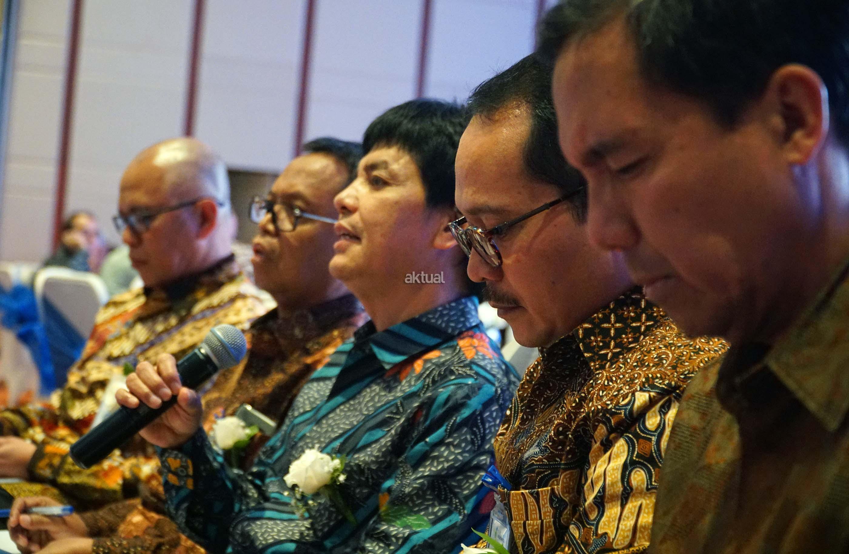 Direktur Utama PT Pupuk Indonesia(persero), Aas Asikin Idat (tengah) didampingi jajaran direksi menjelaskan kinerja perseroan disela penawaran obligasi di Jakarta, Senin (12/6).PT Pupuk Indonesia (persero) menerbitkan obligasi sebanyak banyaknya Rp 3,6 Triliun melalui Penawaran Umum Berkelanjutan (PUB) I tahap 1 tahun 2017.Pupuk Indonesia berencana menggunakan 16% dana hasil emisi obligasi berkelanjutan I tahap I untuk melunasi obligasi I Pupuk Indonesia tahun 2014 seri A. Sisanya 84% dialokasikan untuk pinjaman kepada PT Pupuk Sriwidjaja Palembang ,anak usaha perseroan yang akan digunakan untuk melunasi sebagian kredit investasi. AKTUAL/Eko S Hilman