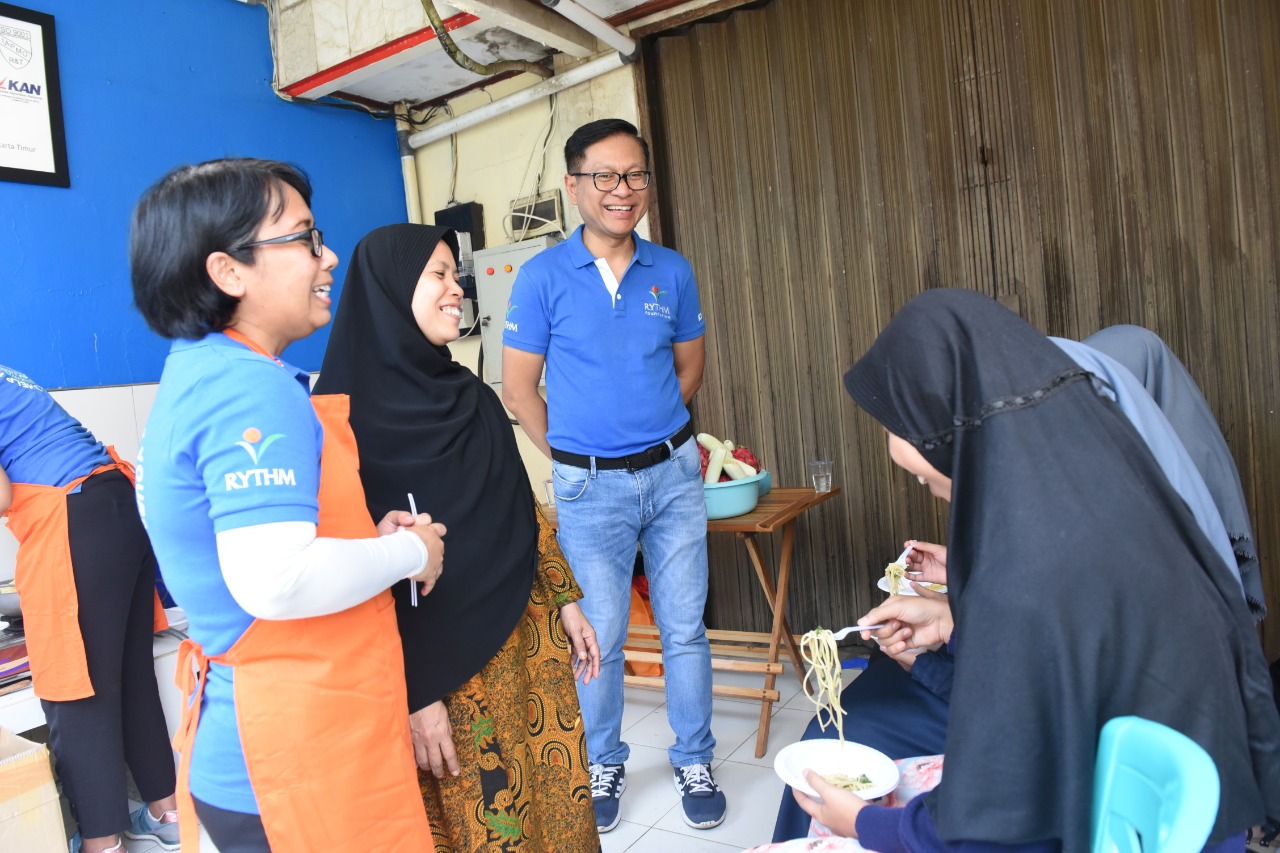 General Manager QNET Indonesia Ganang Rindarko (tengah) berbincang dengan para remaja disela sela pelatihan pembuatan minuman smoothies untuk kesehatan tubuh di Jakarta, Sabtu (23/3/2019). AKTUAL/Dok QNET