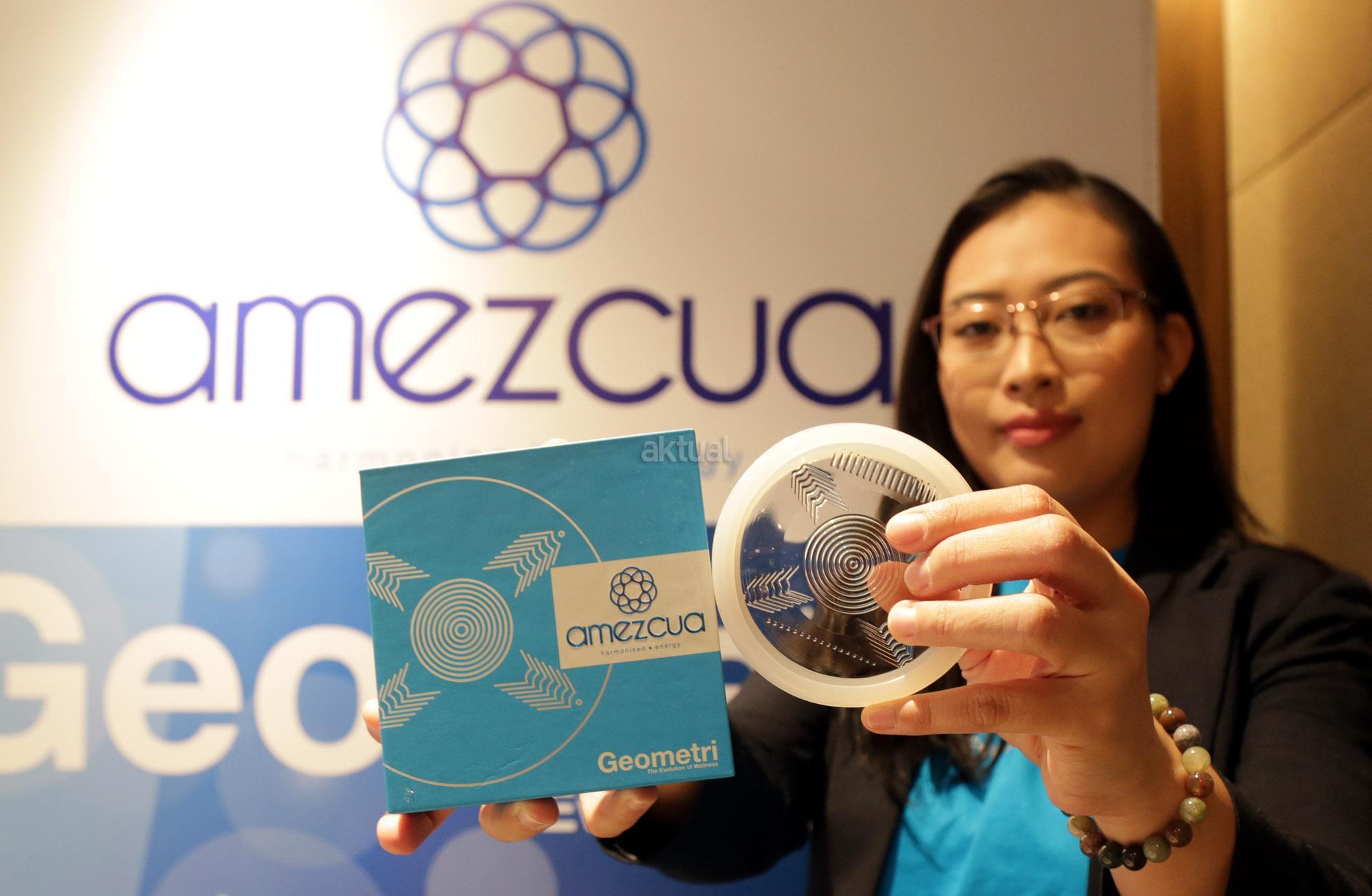 Seorang model memperlihatkan produk Amezcua Geometri di Jakarta, Sabtu (7/7/2018). Amezcua adalah lini produk Energi Selaras QNET yang unik, dirancang untuk meningkatkan keselarasan dan tingkat energi Anda setiap hari. Melalui penelitian dan pengembangan berkelanjutan, Amezcua terus menyediakan produk kebugaran berkualitas yang merangsang gaya hidup seimbang dan meningkatkan kondisi pikiran, tubuh dan jiwa. AKTUAL/Tino Oktaviano