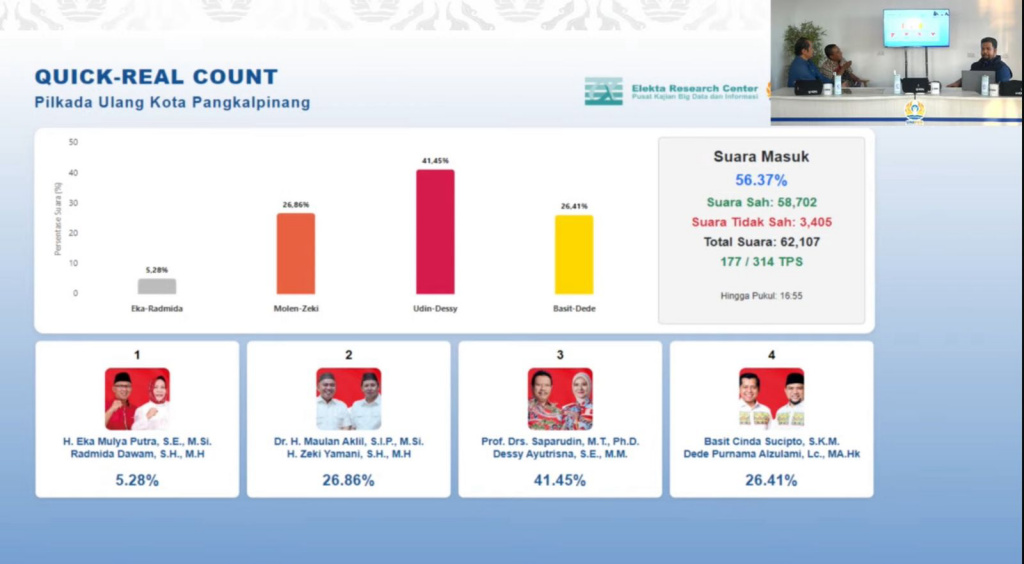 Jakarta, Aktual.com – Pasangan calon walikota dan calon wakil walikota nomor urut 3 (tiga) Saparuddin dan Dessy Ayu Trisna memenangi pemilihan suara ulang Pilkada Kota Pangkalpinang, Bangka Belitung, yang digelar Rabu, 27 Agustus 2025.