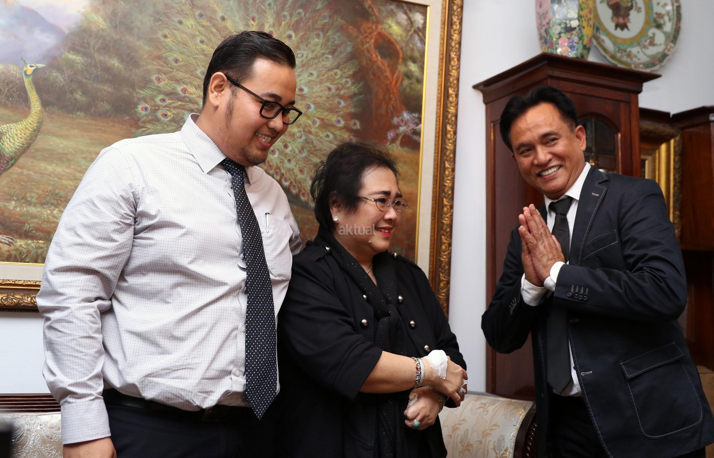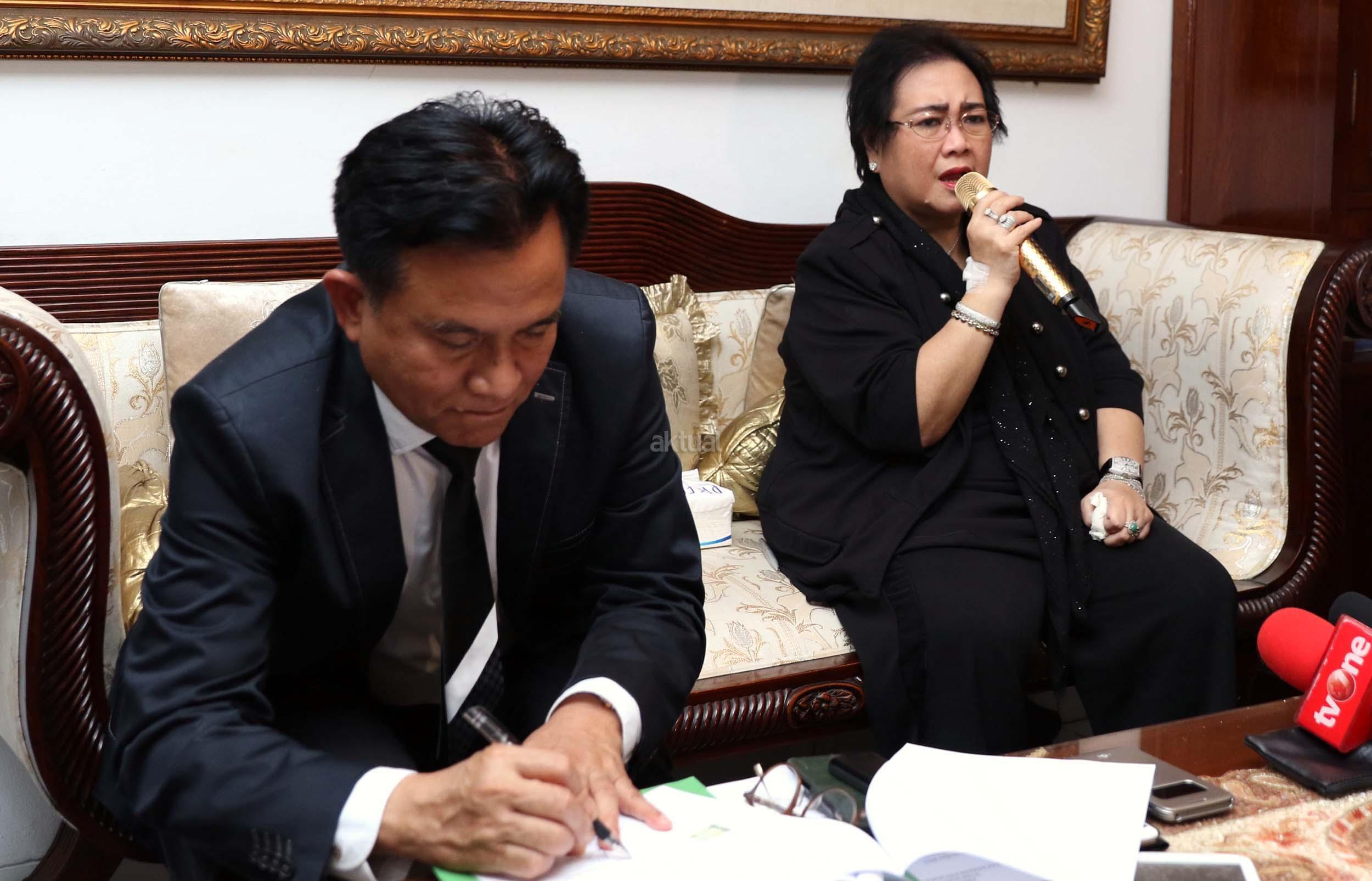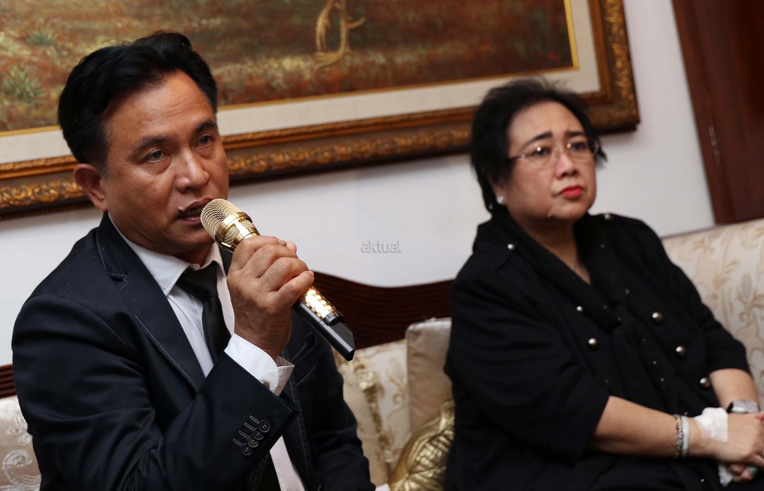 Ketua Pendiri Yayasan Pendidikan Soekarno (YPS) Rachmawati Soekarnoputri (kanan) bersama Kuasa Hukumnya, Yusril Ihza Mahendra (kiri) memberikan keterangan kepada wartawan terkait kasus dugaan makar di Jakarta, Rabu (7/12/2016). Rachmawati dengan tegas membantah tuduhan makar yang disangkakan padanya terkait aksi bela Islam jilid III pada 2 Desember 2016. AKTUAL/Munzir