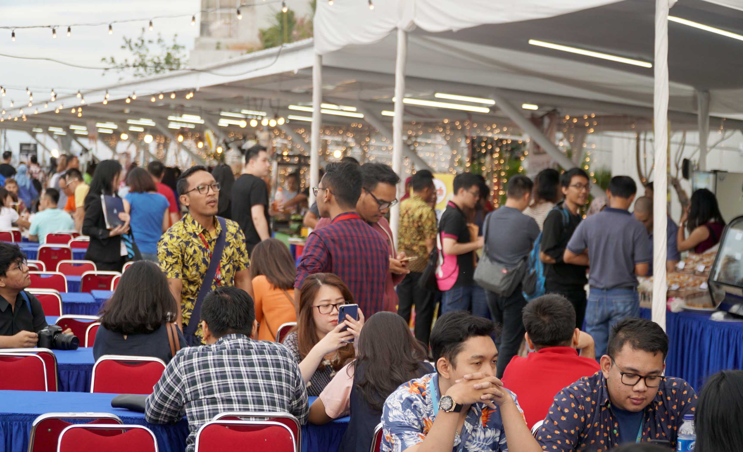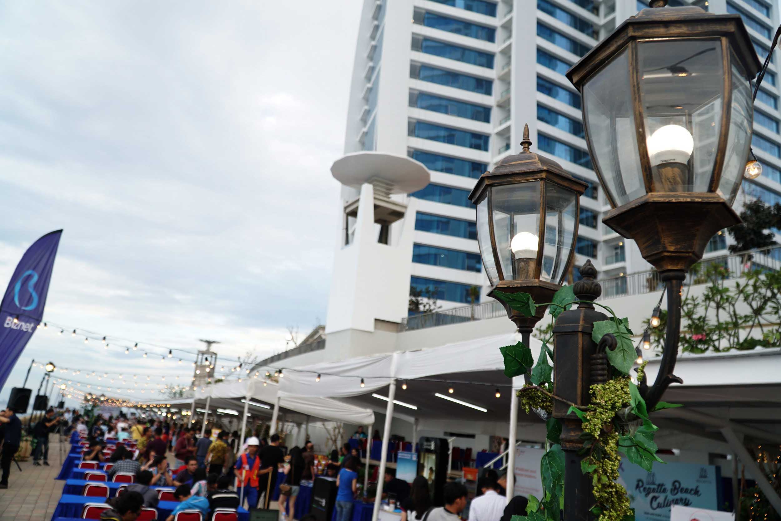 Suasana peserta dan pengunjung Regatta Beach Culinary di Kawasan Regatta, Pantai Mutiara, Pluit, Jakarta Utara, Jumat (21/9). Regatta salah satu proyek pengembangan high-rise dari pengembang properti nasional PT Intiland Development Tbk menggelar festival kuliner spesial yang bernama “Regatta Beach Culinary” selama 3 hari. Festival yang berlangsung mulai sore hingga malam tersebut antara lain menyuguhkan beragam hidangan nusantara dan international dengan konsep bernuansa pantain dan dihibur oleh penampilan beberapa musisi. Festival ini diikuti lebih dari 50 peserta di lokasi festival yang disulap dengan dekorasi obor, barrel dan lampu gantung. AKTUAL/Eko S Hilman