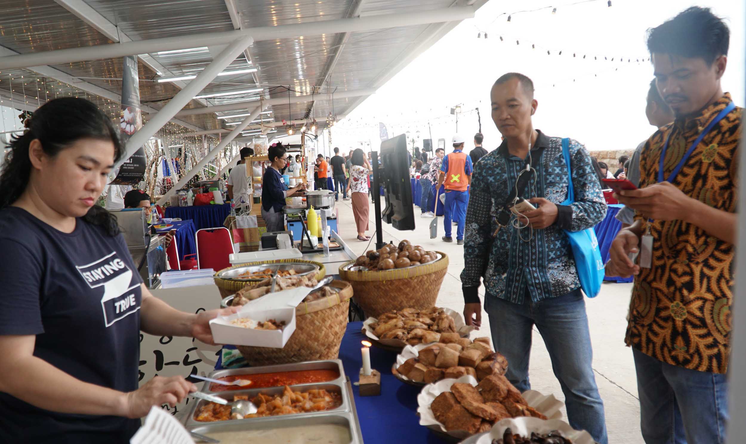 Wakil Presiden Direktur dan Chief Operating Office PT Intiland Developmnet Tbk, Suhendro Prabowo (kiri) dan Marketing Manager Regatta, David Lelij menyapa peserta Regatta Beach Culinary di Kawasan Regatta, Pantai Mutiara, Pluit, Jakarta Utara, Jumat (21/9). Regatta salah satu proyek pengembangan high-rise dari pengembang properti nasional PT Intiland Development Tbk menggelar festival kuliner spesial yang bernama “Regatta Beach Culinary” selama 3 hari. Festival yang berlangsung mulai sore hingga malam tersebut antara lain menyuguhkan beragam hidangan nusantara dan international dengan konsep bernuansa pantain dan dihibur oleh penampilan beberapa musisi. Festival ini diikuti lebih dari 50 peserta di lokasi festival yang disulap dengan dekorasi obor, barrel dan lampu gantung. AKTUAL/Eko S Hilman