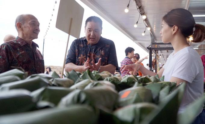 Wakil Presiden Direktur dan Chief Operating Office PT Intiland Developmnet Tbk, Suhendro Prabowo (kiri) dan Marketing Manager Regatta, David Lelij menyapa peserta Regatta Beach Culinary di Kawasan Regatta, Pantai Mutiara, Pluit, Jakarta Utara, Jumat (21/9). Regatta salah satu proyek pengembangan high-rise dari pengembang properti nasional PT Intiland Development Tbk menggelar festival kuliner spesial yang bernama "Regatta Beach Culinary" selama 3 hari. Festival yang berlangsung mulai sore hingga malam tersebut antara lain menyuguhkan beragam hidangan nusantara dan international dengan konsep bernuansa pantain dan dihibur oleh penampilan beberapa musisi. Festival ini diikuti lebih dari 50 peserta di lokasi festival yang disulap dengan dekorasi obor, barrel dan lampu gantung. AKTUAL/Eko S Hilman