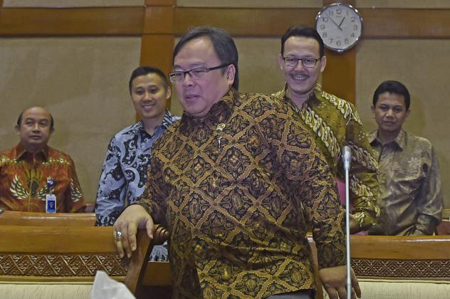 Menteri Keuangan Bambang Brodjonegoro (tengah) didampingi Direktur Utama BPJS Kesehatan Fachmi Idris (kiri) mengikuti rapat kerja dengan Komisi XI di Komplek Parlemen Senayan, Jakarta, Senin (20/6). Raker tersebut membahas masalah Penyertaan Modal Negara (PMN) tahun 2016 dan Tambahan alokasi Pembiayaan non utang dalam RAPBN-P Tahun Anggaran 2016. ANTARA FOTO/Puspa Perwitasari/ama/16