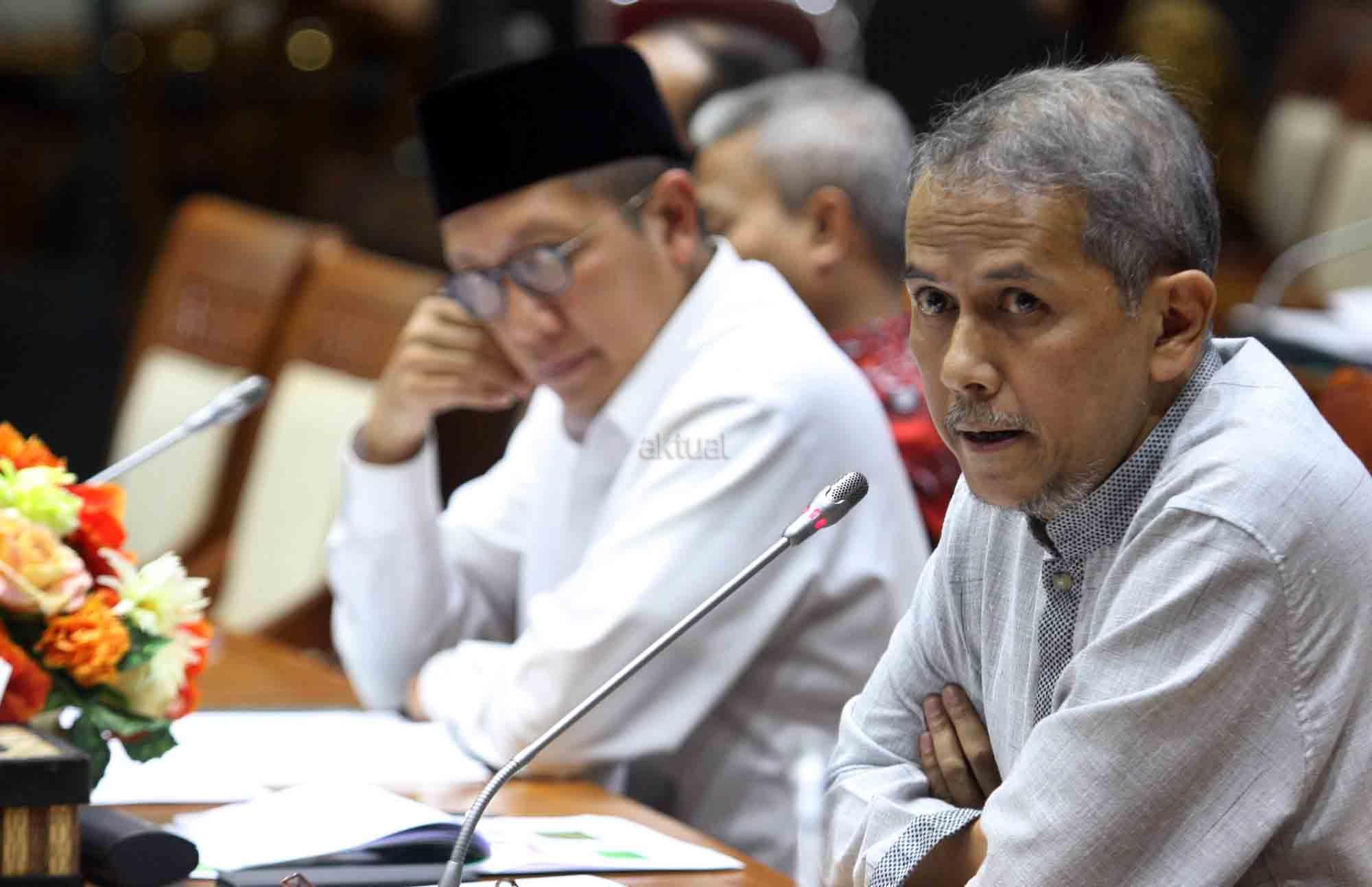 Kepala Badan Pelaksana Badan Pengelola Keuangan Haji (BPKH) Anggito Abimanyu mengikuti Raker dengan Komisi VIII DPR di Kompleks Parlemen Senayan, Jakarta, Kamis (24/5). Rilis 200 daftar nama mubalig penceramah Islam di Indonesia yang dikeluarkan Kementerian Agama disinggung dalam rapat kerja Komisi VIII DPR hari ini dengan Menteri Agama (Menag) Lukman Hakim Saifuddin. Lukman Hakim Saifuddin pun meluruskan polemik tersebut kepada Komisi VIII DPR. AKTUAL/Tino Oktaviano