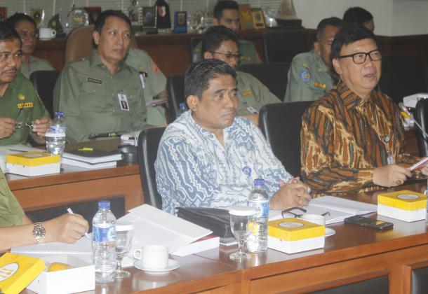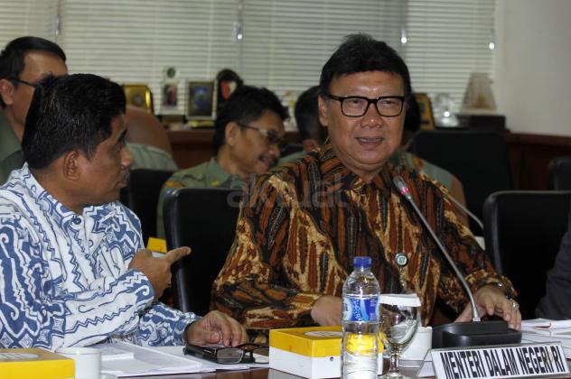 Menteri Dalam Negeri Tjahjo Kumolo menghadiri Rapat Kerja (Raker) dengan Komite I DPD RI di Komplek Parlemen, Senayan, Jakarta, Senin (21/09/2015). Raker dengan Mendagri membahas isu-isu terkait permasalahan pelaksanaan UU No. 23 tahun 2014 tentang pemerintah daerah, pelaksanaan pemilihan Kepala daerah serentak tahun 2015 dan kebijakan pemerintah tentang penataan ruang.