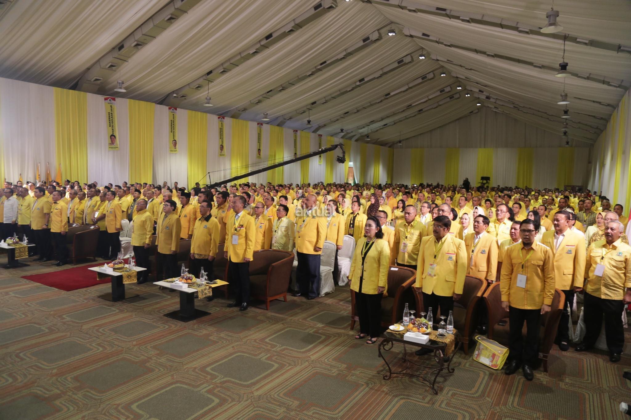 Suasana pembukaan Rakernas Partai Golkar di Hotel Sultan, Jakarta, Kamis (22/3/18). Rakernas Golkar digelar untuk meneguhkan etika politik mewujudkan partai Golkar bersih menuju sukses pemilu 2019 yang bermartabat. AKTUAL/Tino Oktaviano