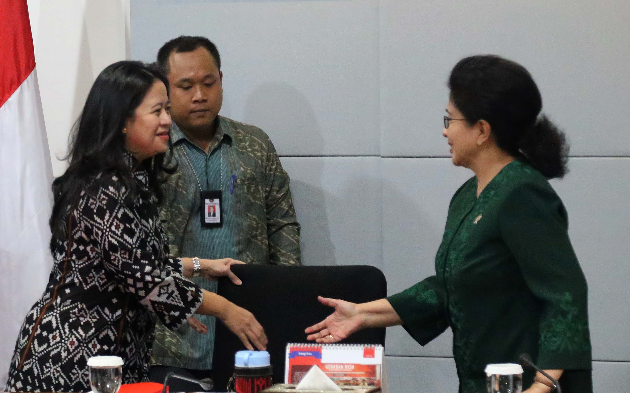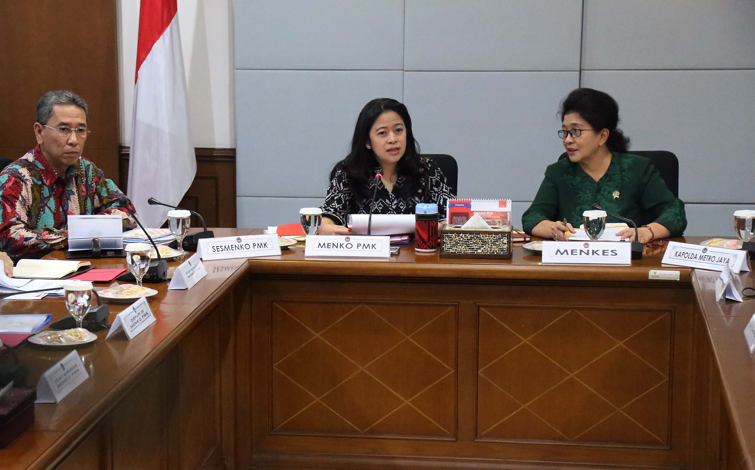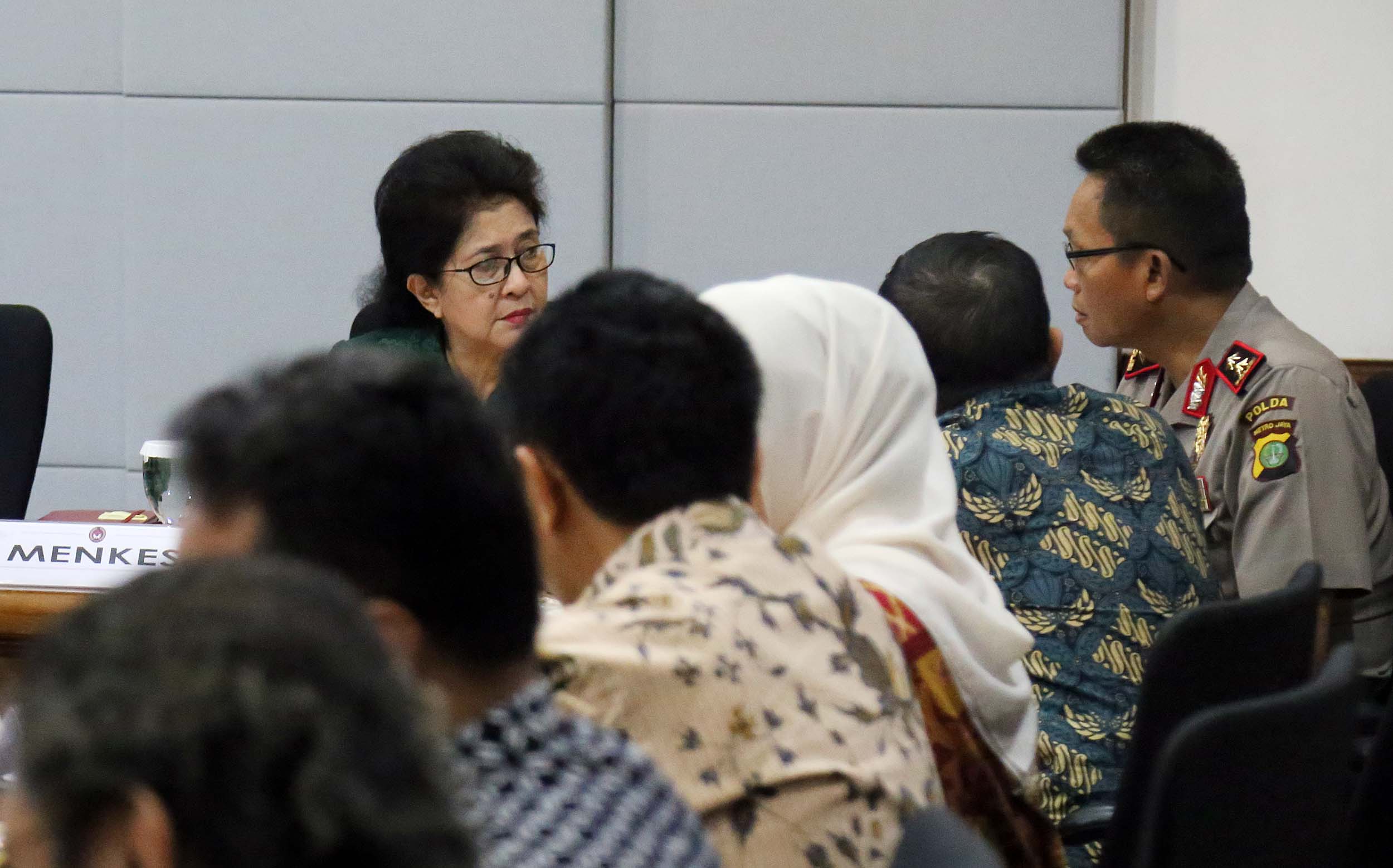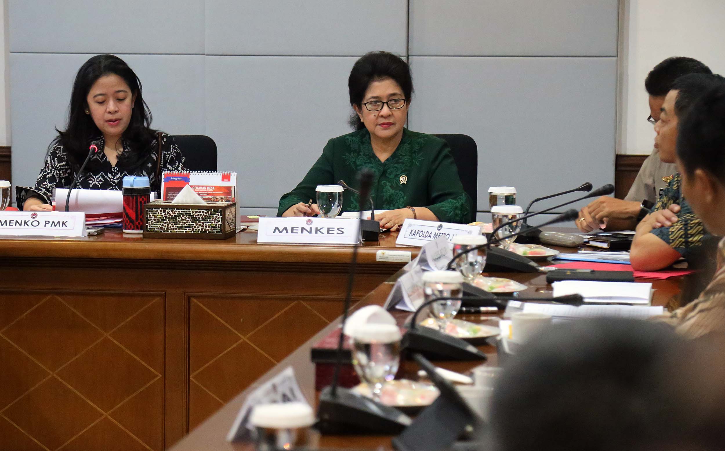 Menteri Koordinator Bidang Pembangunan Manusia dan Kebudayaan Puan Maharani (kiri) didampingi Menteri Kesehatan Nila F Moeloek (tengah) dan Kapolda Metro Jaya Irjen Moechgiyarto (kanan) memimpin rapat koordinasi tingkat menteri di Kantor Kemenko PMK, Jakarta, Selasa (26/7/2016). Rapat tersebut membahas perkembangan penanganan kasus vaksin palsu.