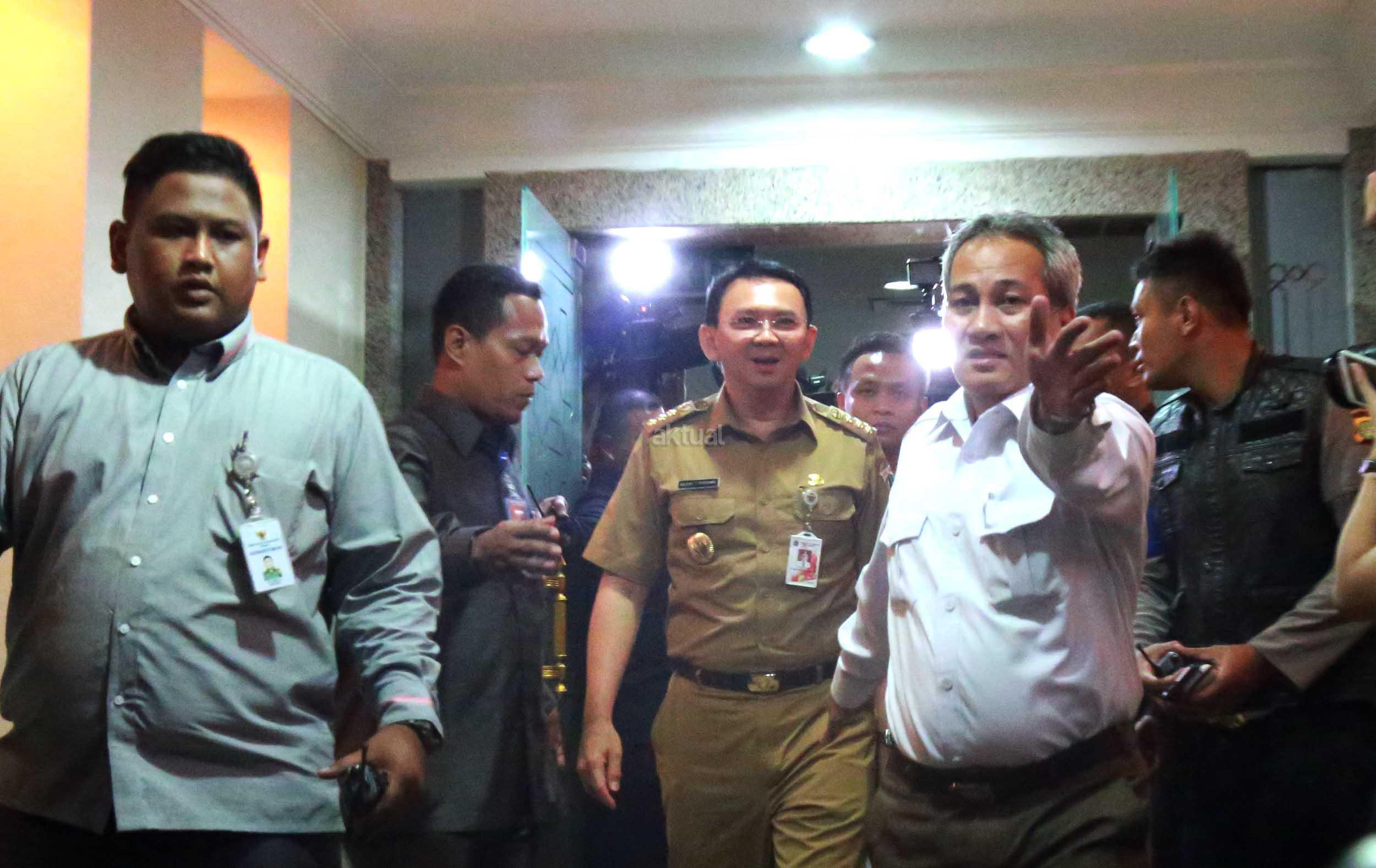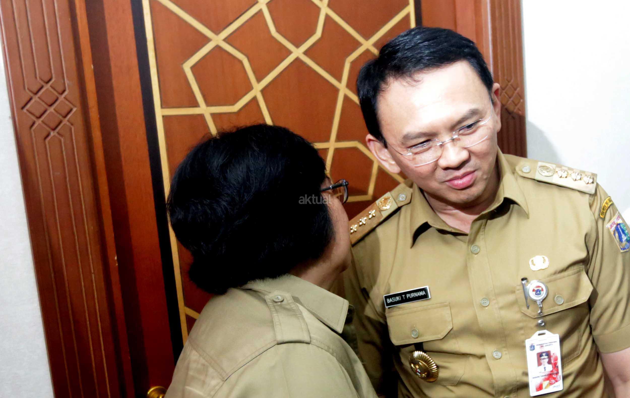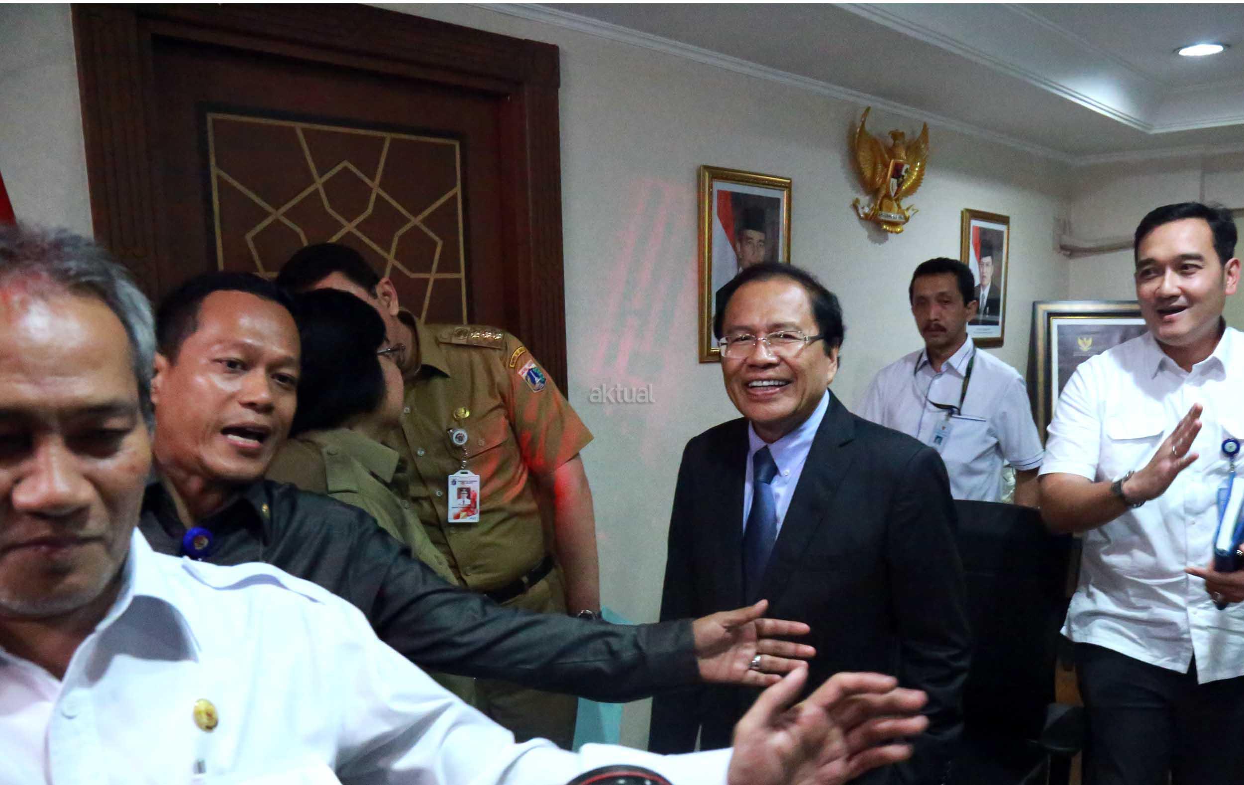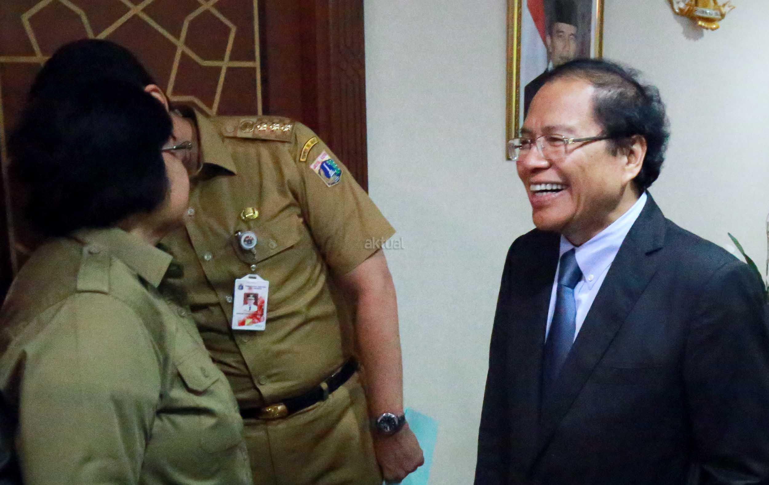 Menteri Koordinator Maritim dan Sumber Daya Rizal Ramli (kanan) berbincang bersama Menteri Lingkungan Hidup dan Kehutanan Siti Nurbaya (kiri) dan Gubernur DKI Jakarta Basuki Tjahaja Purnama (tengah) sebelum memulai rapat koordinasi Kementerian/Lembaga dan Gubernur DKI Jakarta di Gedung Kemenko Maritim, Jakarta, Senin (18/4/2016). Rapat yang dilakukan secara tertutup tersebut membahas mengenai "Reklamasi Pantai Utara Jakarta".
