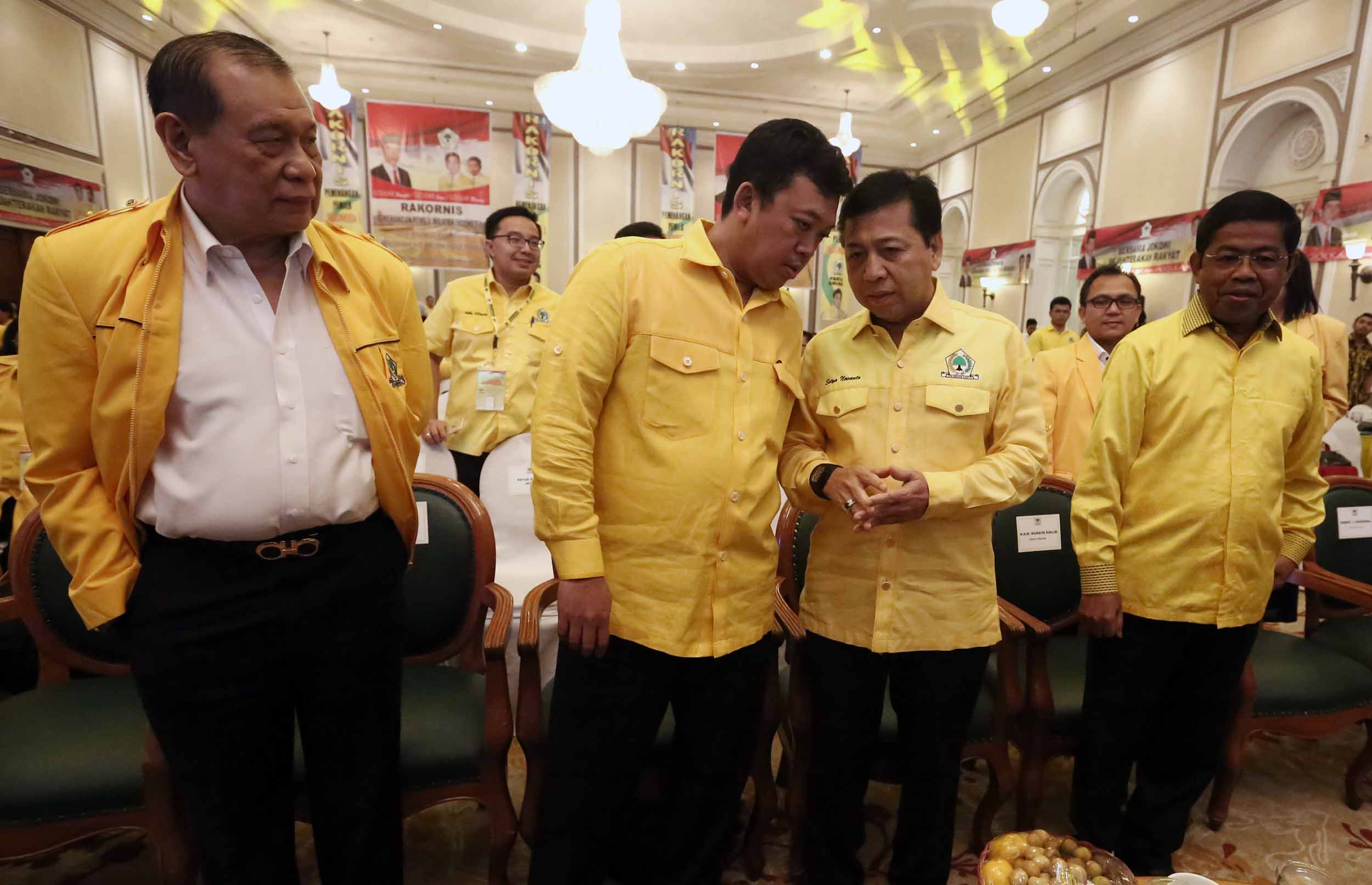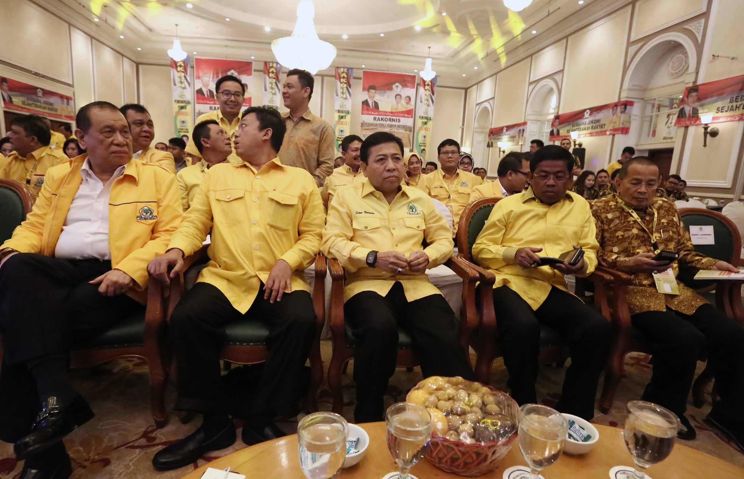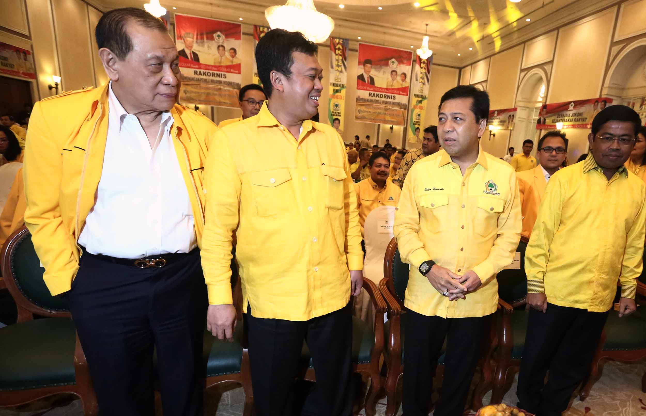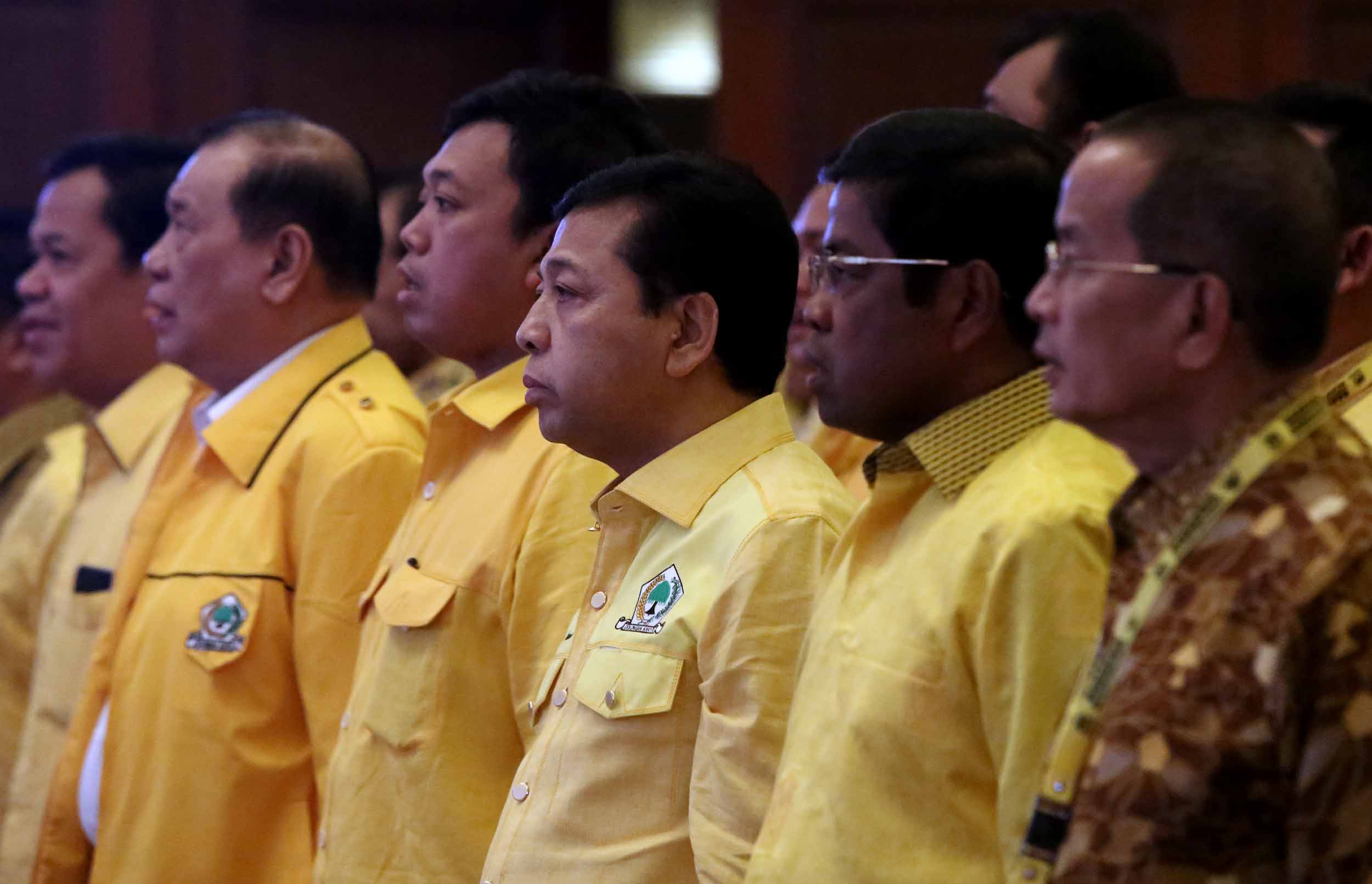 Ketua Umum DPP Partai Golkar Setya Novanto (kedua kanan) didampingi Ketua Koordinator Bidang Pemenangan Pemilu Wilayah Indonesia I Nusron Wahid (kedua kiri), Sekjen Idrus Marham (kanan) dan Ketua Koordinator Bidang Kepartaian Kahar Muzakir (kiri) menghadiri pembukaan rapat koordinasi teknis (Rakornis) Pemenangan Pemilu Wilayah Indonesia I Partai Golkar di Jakarta, Jumat (2/9/2016). Kegiatan untuk persiapan pemenangan Pilkada dan Pemilu tersebut mengangkat tema Solid, Terkonsolidasi, Efektif Mengemban Misi, Berjaya Di kala Pemilu.