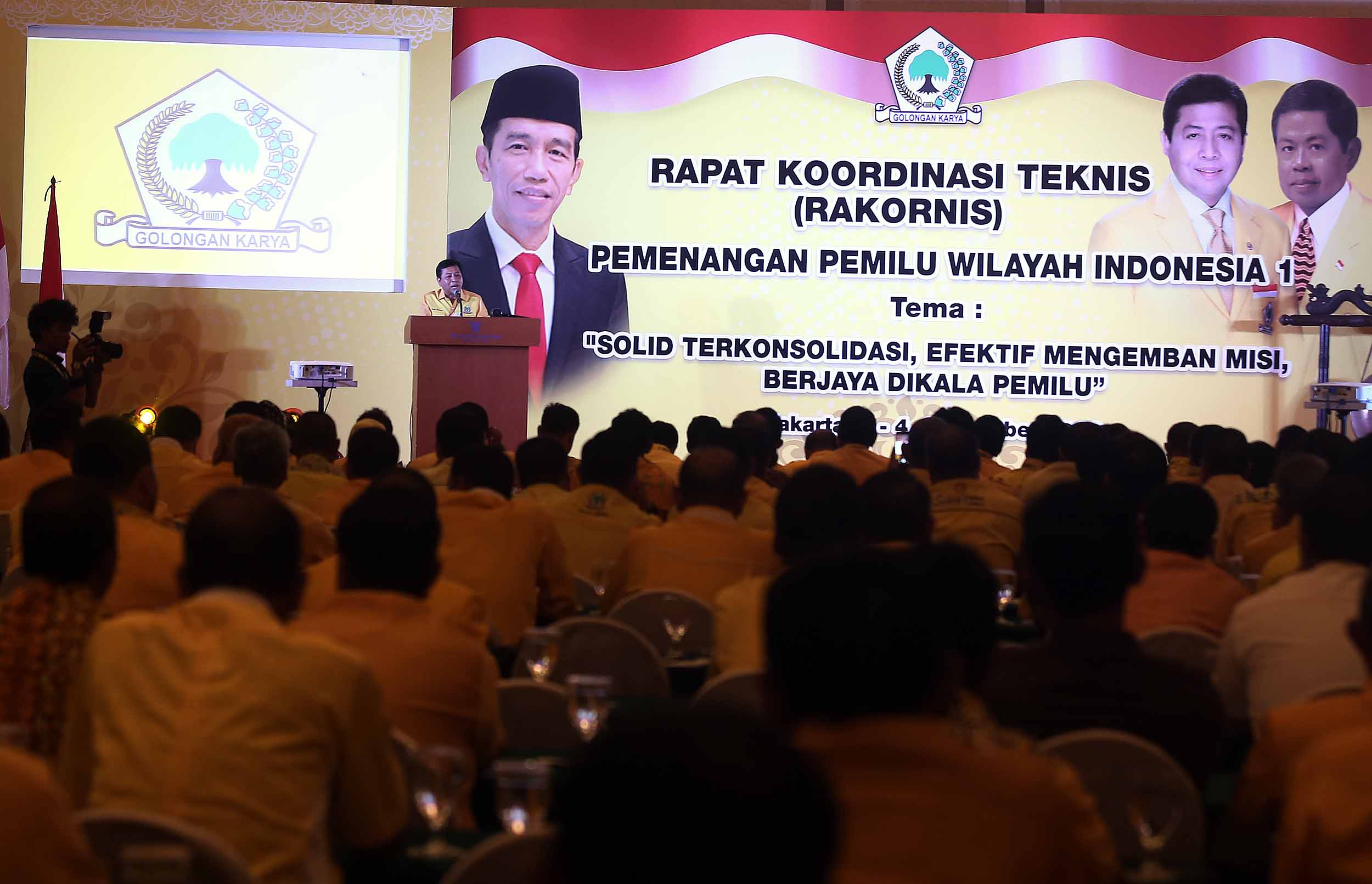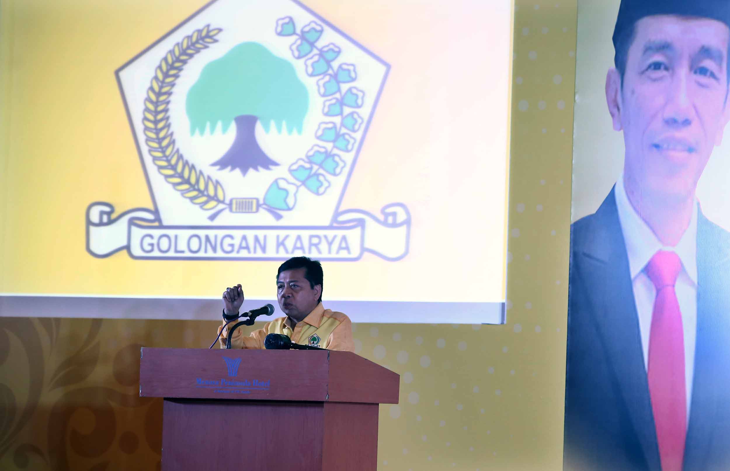 Ketua Umum DPP Partai Golkar Setya Novanto menyampaikan pengarahan dalam pembukaan rapat koordinasi teknis (Rakornis) Pemenangan Pemilu Wilayah Indonesia I Partai Golkar di Jakarta, Jumat (2/9/2016). Kegiatan untuk persiapan pemenangan Pilkada dan Pemilu tersebut mengangkat tema Solid, Terkonsolidasi, Efektif Mengemban Misi, Berjaya di Kala Pemilu.