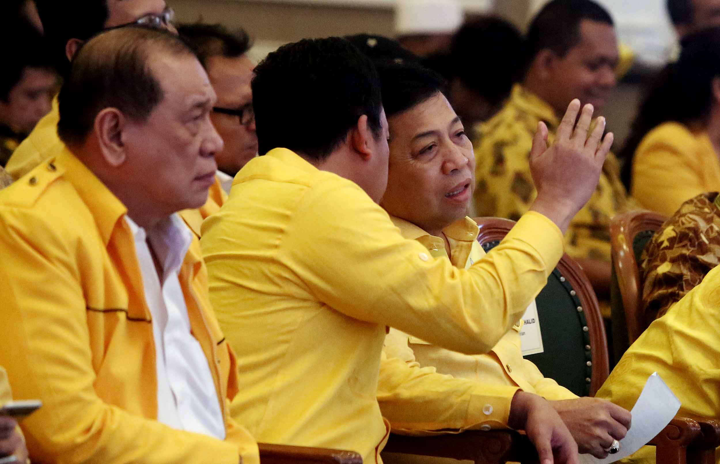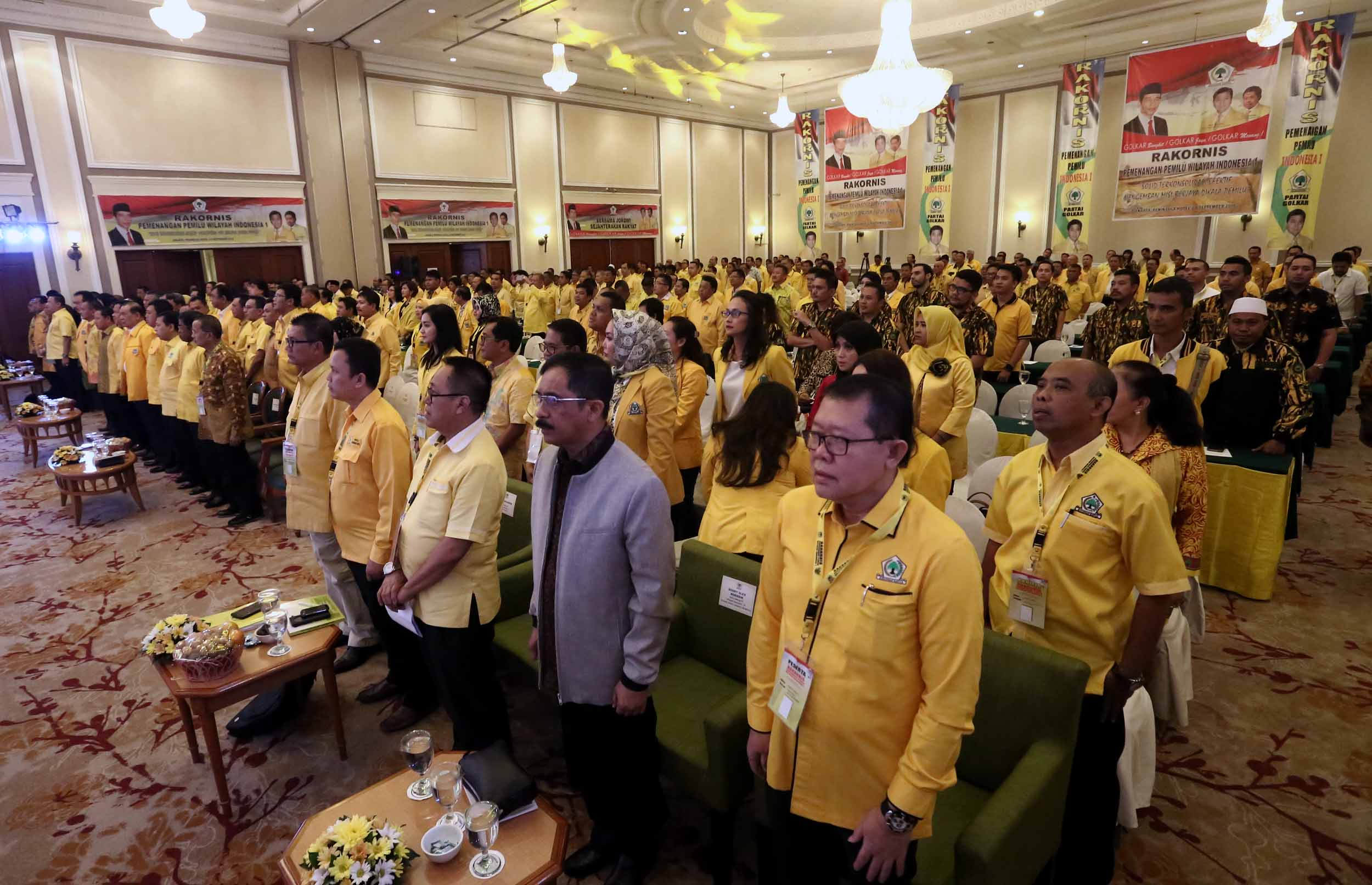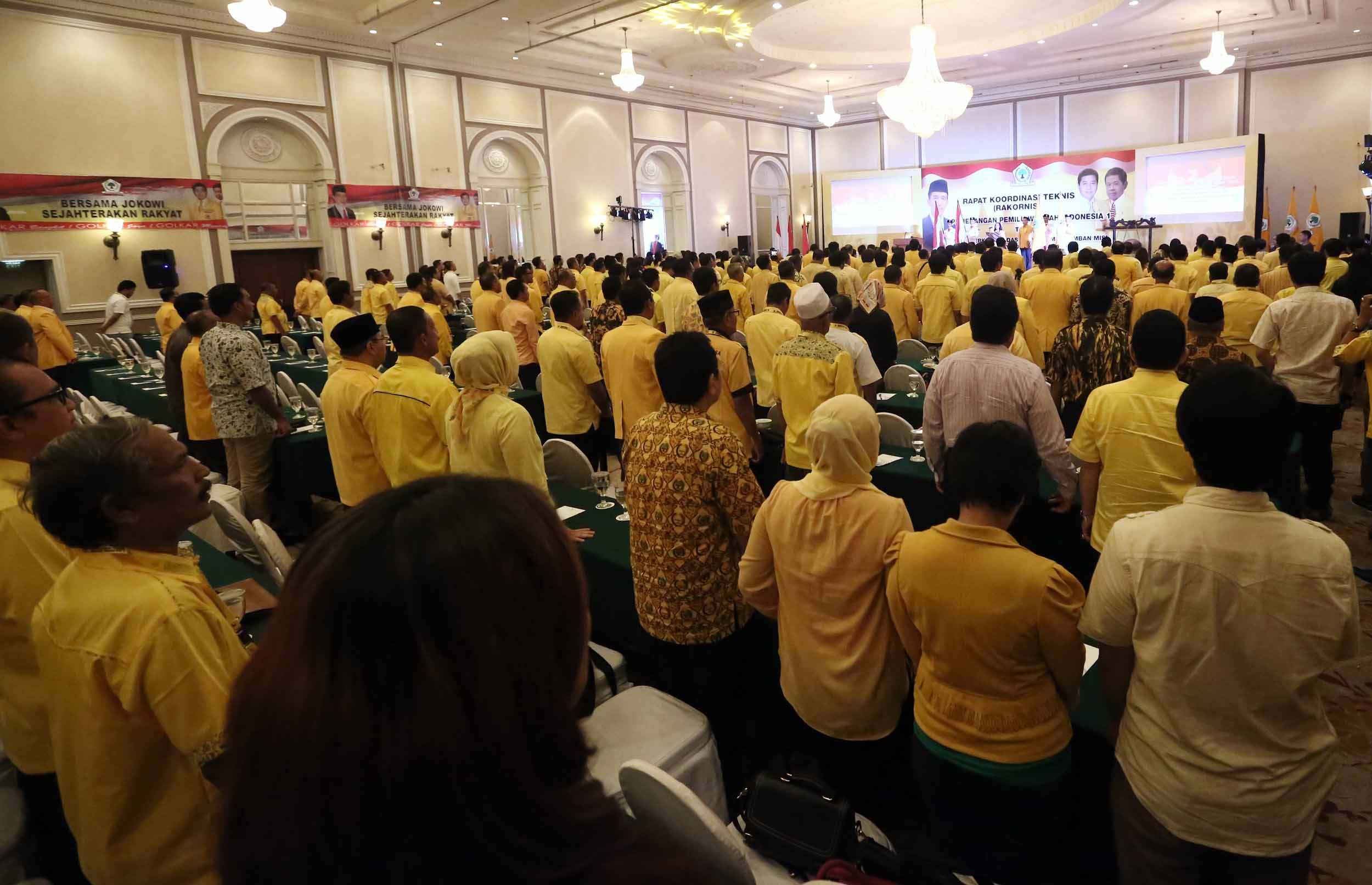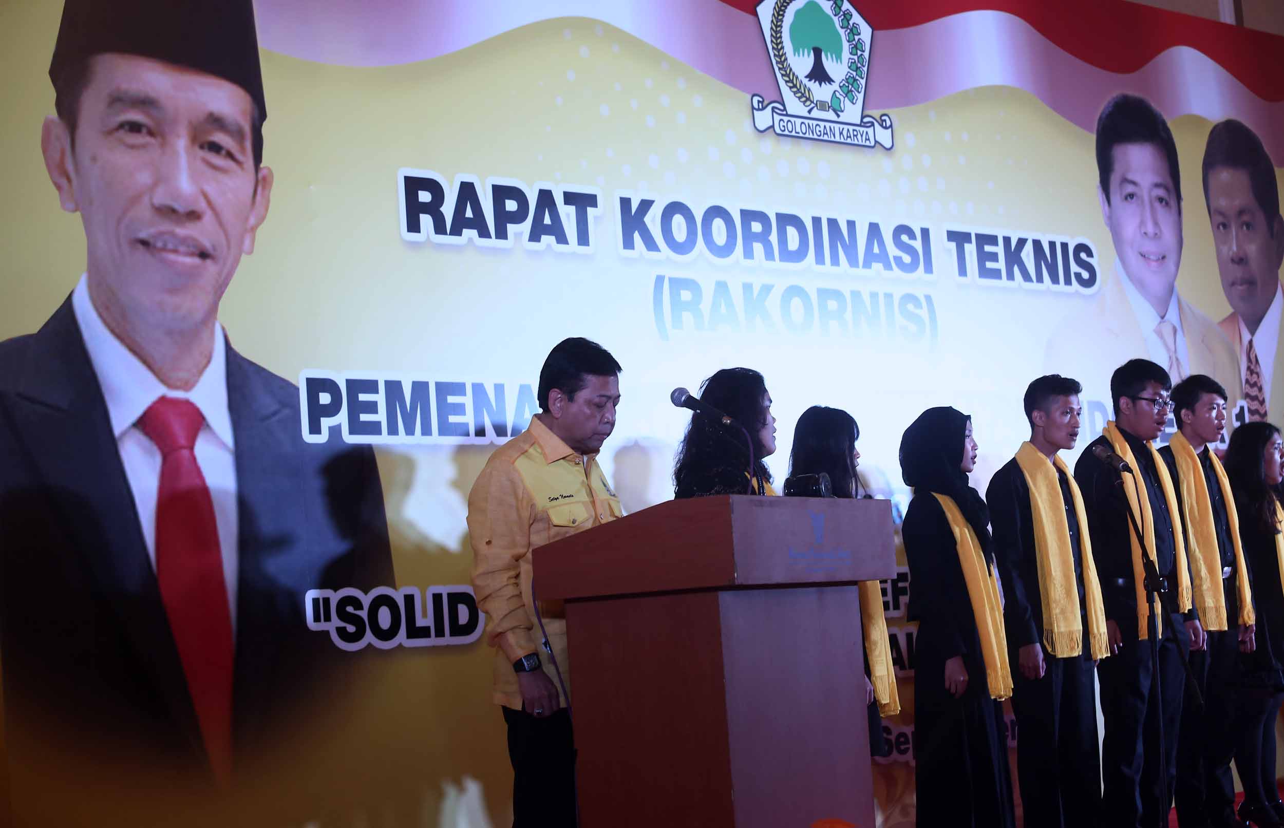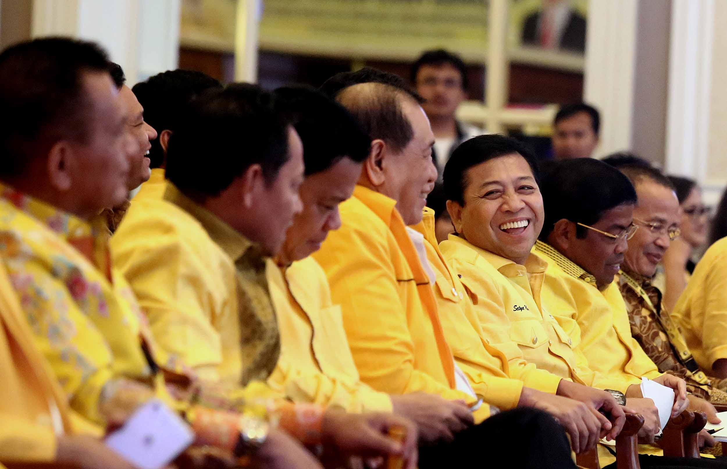 Ketua Umum DPP Partai Golkar Setya Novanto memukul gong dan sekaligus membuka rapat koordinasi teknis (Rakornis) Pemenangan Pemilu Wilayah Indonesia I Partai Golkar di Jakarta, Jumat (2/9/2016). Kegiatan untuk persiapan pemenangan Pilkada dan Pemilu tersebut mengangkat tema Solid, Terkonsolidasi, Efektif Mengemban Misi, Berjaya di Kala Pemilu.