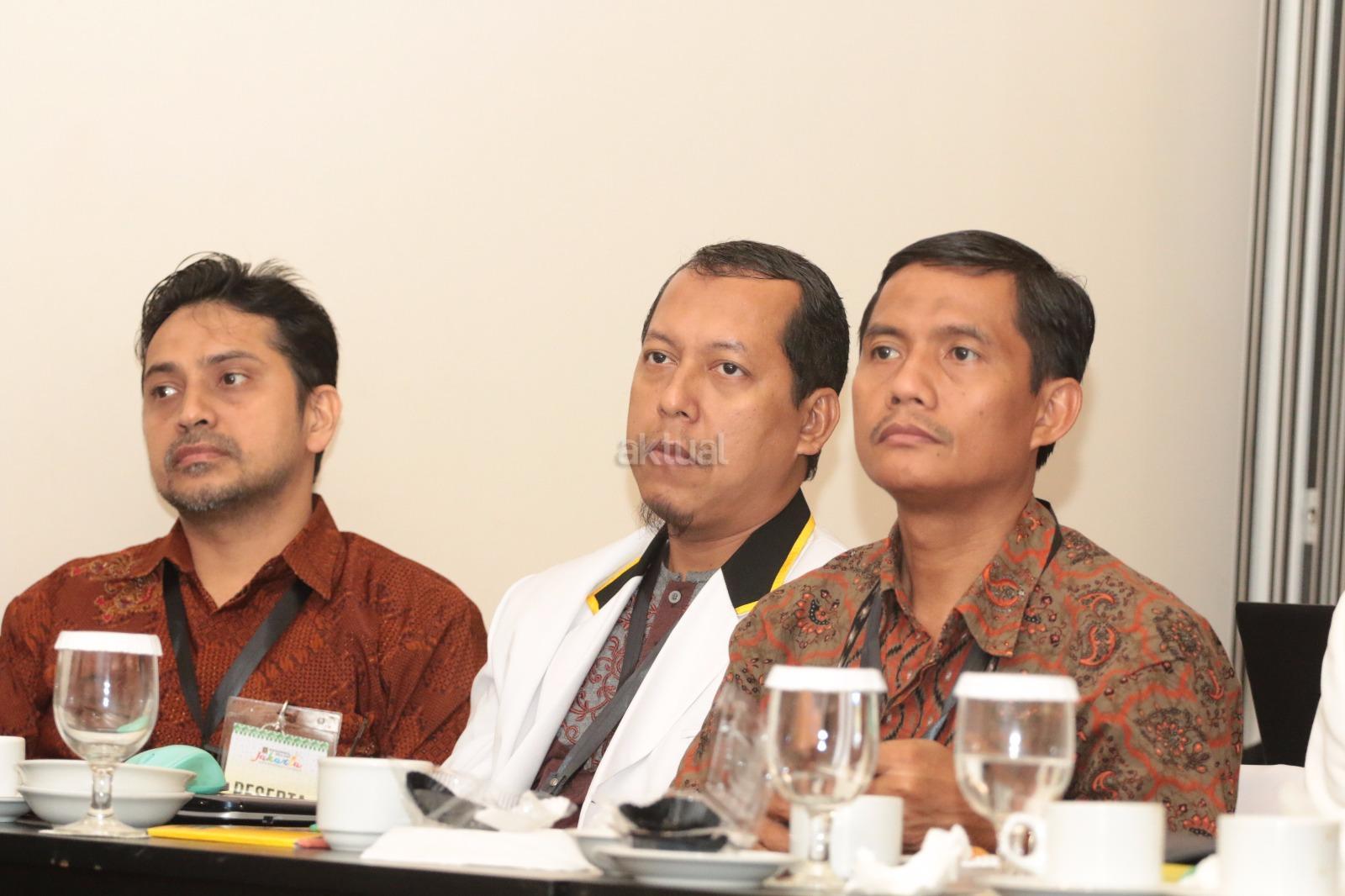 Ketua DPD PKS Jakarta Barat Abdul Aziz Adwani (kiri), Ketua DPD PKS Jakarta Pusat Ismail (tengah) dan Ketua DPD PKS Jakarta Utara Ahmad Mardono (kanan) menyimak paparan dalam Rapat Koordinasi Wilayah (Rakorwil) di Hotel Sofyan Inn, Tebet Jakarta Selatan, Minggu (19/3/2017). PKS bertekad memenangkan pasangan calon gubernur Anies Baswedan-Sandiaga Uno (Anies-Sandi) pada putaran dua Pilkada DKI Jakarta 2017. AKTUAL/HO