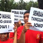 Ratusan masyarakat miskin yang tergabung dalam Serikat Rakyat Miskin Indonesia (SRMI) melakukan aksi unjuk rasa di depan Balai Kota, Jakarta, Kamis (3/11/2016). Dalam aksinya SRMI menolak Gubenur Penggusur (Ahok) Rakyat Miskin dan mendesak Gubernur DKI untuk gratiskan sewa rumah susun. AKTUAL/Munzir