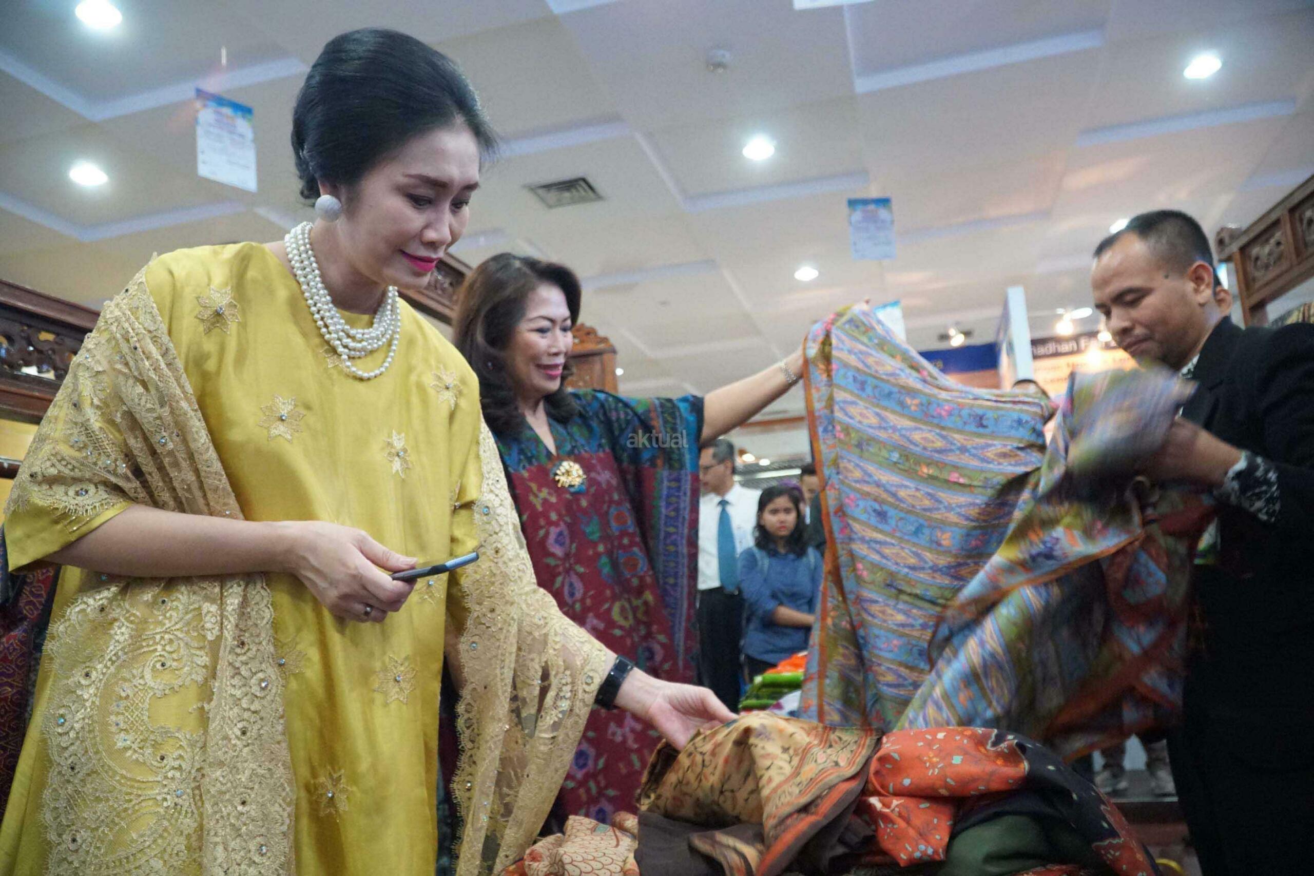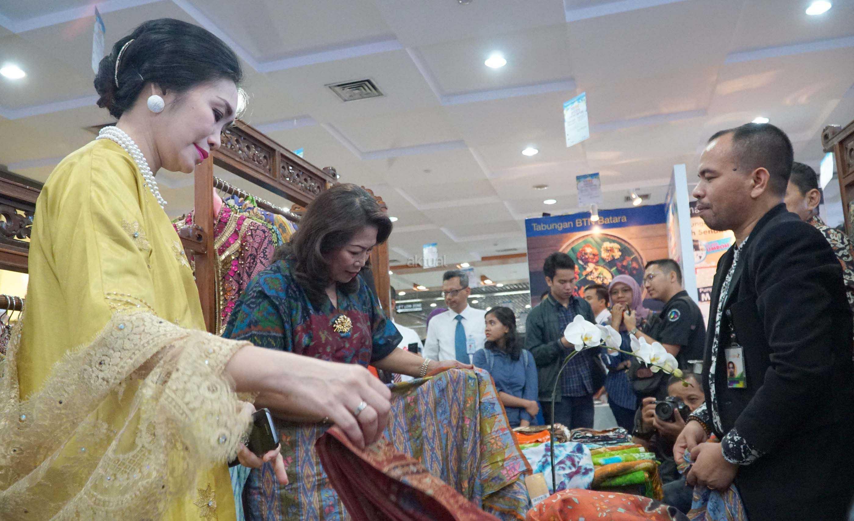 Direktur Consumer Banking bank BTN Handayani (kiri), didampingi Ketua Ikatan Istri Karyawan dan Pensiunan Bank BTN Dei Maryono (tengah) memilih batik, usai membuka Ramadan Fair Bank BTN, di Jakarta, Senin (12/6). Ramadan Fair 2017 yang berlangsung 12-16 Juni 2017 dan diikuti 41 peserta yang menawarkan berbagai merek ternama tersebut, ditargetkan dapat membukukan 2.500 transaksi dan pendapatan non bunga sebesar Rp100 juta dengan mengoptimalkan transaksi non tunai. AKTUAL/Eko s Hilman