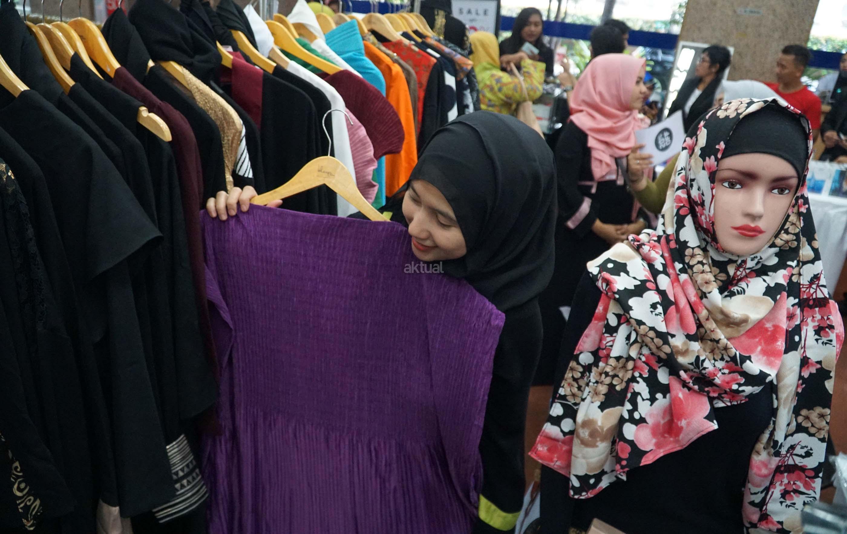 Pengunjung memilih busana saat pembukaan Ramadan Fair Bank BTN, di Jakarta, Senin (12/6). Ramadan Fair 2017 yang berlangsung 12-16 Juni 2017 dan diikuti 41 peserta yang menawarkan berbagai merek ternama tersebut, ditargetkan dapat membukukan 2.500 transaksi dan pendapatan non bunga sebesar Rp100 juta dengan mengoptimalkan transaksi non tunai. AKTUAL/Eko s Hilman