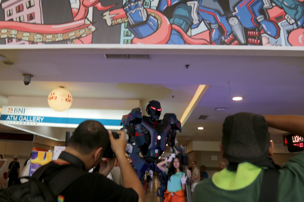 Model pose saat diabadikan peserta lomba foto suasana Lindeteves Trade Centre (LTC), Jalan Hayam Wuruk, Jakarta Barat, Sabtu (7/10/2017). Lomba foto ini diselenggarakan untuk memperkenalkan Harco Glodok dan rencana peluncurkan kawasan Perniagaan atau trade mall awal tahun 2018. AKTUAL/Tino Oktaviano
