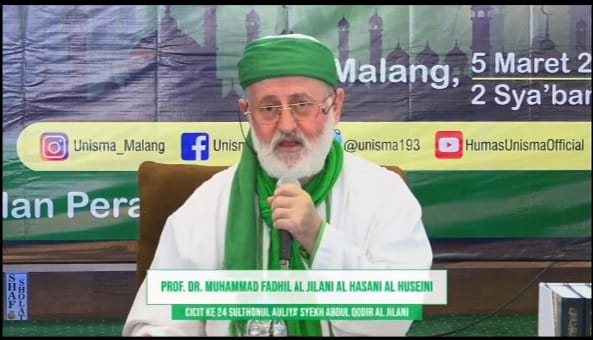 Syekh Fadhil al-Jilani bertolak ke Universitas Islam (UNISMA) Malang, pada Sabtu (5/3) untuk melakukan Launching kitab Tafsir Al-Jailani dan disambut oleh Rektor UNISMA Malang, Prof. Dr. H. Maskuri, M.Si.