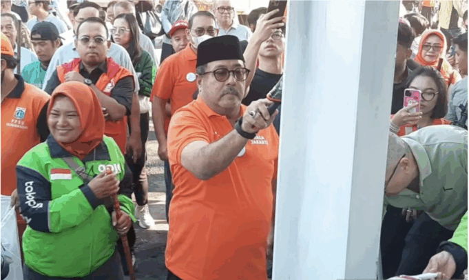 Wakil Gubernur DKI Jakarta Rano Karno dalam kegiatan gotong royong Jaga Jakarta di kawasan Senen, Jakarta Pusat, Senin (1/9/2025). ANTARA/Lia Wanadriani Santosa.
