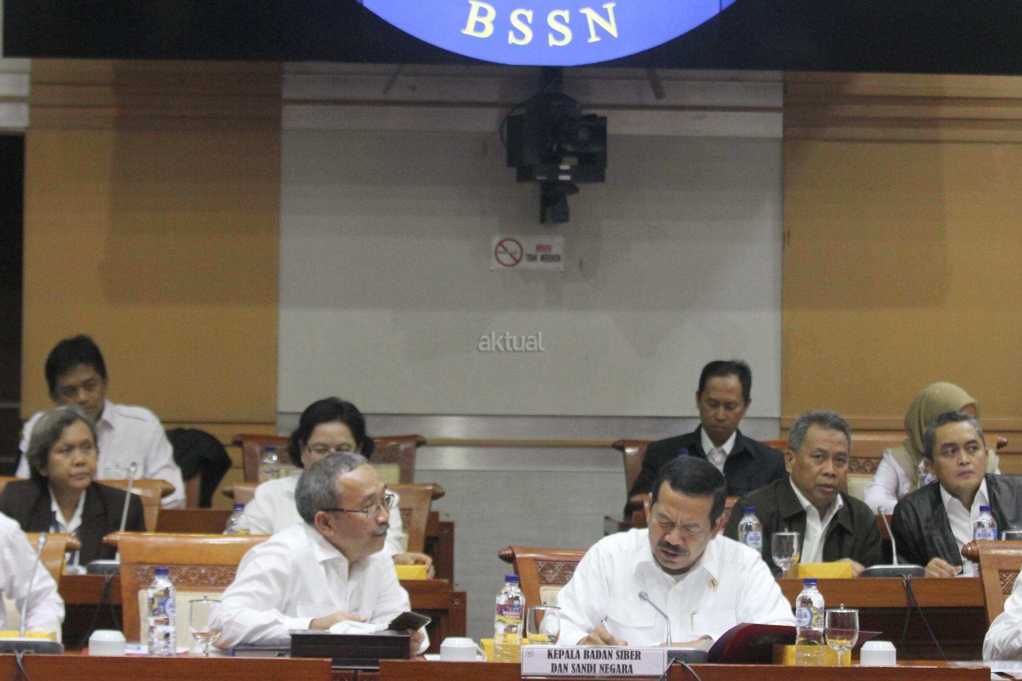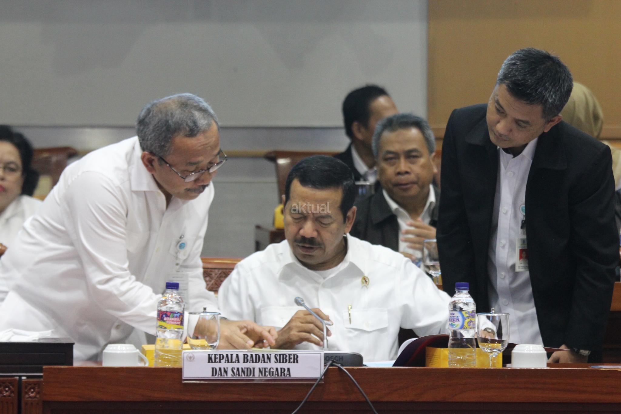 Kepala Badan Siber dan Sandi Negara (BSSN) Djoko Setiadi bersiap mengikuti rapat kerja dengan Komisi IDPR di Komplek Parlemen, Jakarta, Selasa (13/2). Rapat kerja tersebut membahas mengenai Rencana Program Kerja BSSN, Struktur Organisasi BSSN dan Alokasi Anggaran BSSN T.A. 2018. AKTUAL/Tino Oktaviano