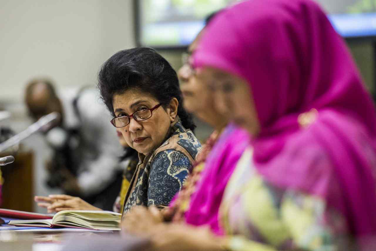 Menkes Nila Moeloek (kiri) didampingi Mensos Khofifah Indar Parawansa (kanan) dan Menteri Pemberdayaan Perempuan dan Perlindungan anak Yohana Yambise (tengah) mengikuti rapat kerja dengan Komisi VIII di Komplek Parlemen, Senayan, Jakarta, Kamis (21/7). Rapat kerja tersebut membahas keterangan Pemerintas atas penetapan Perppu No. 1 Tahun 2016 tentang Perubahan Kedua atas UU No. 23 Tahun 2002 tentang Perlindungan Anak. ANTARA FOTO/M Agung Rajasa/nz/16