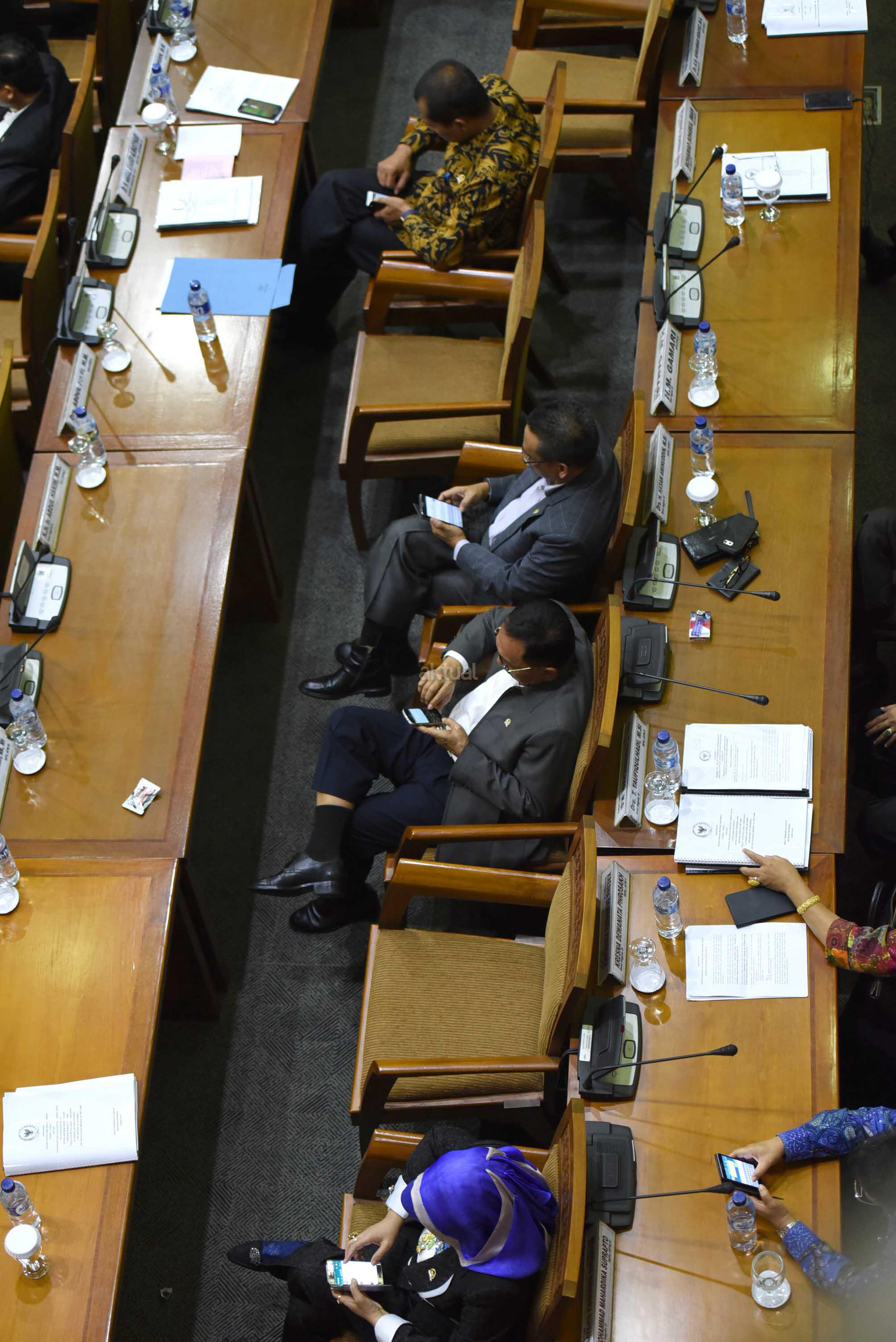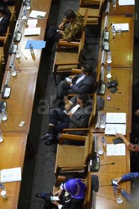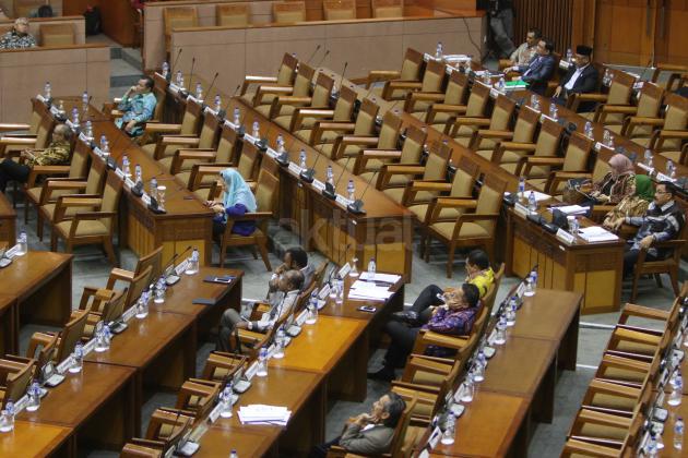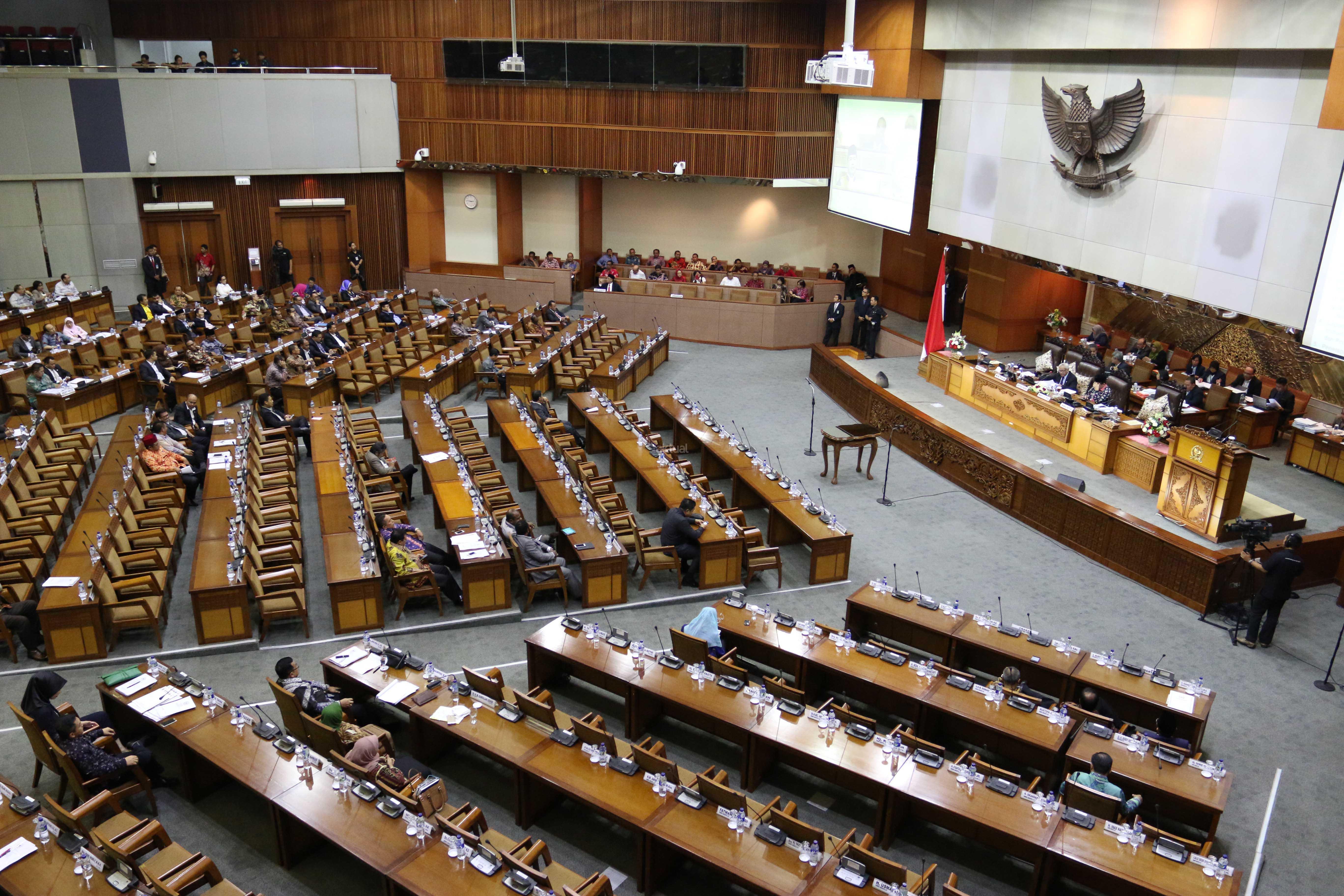 Suasana Sidang Paripurna DPR-RI Ke-8 Masa Persidangan I Tahun Sidang 2015-2016 di Kompleks Parlemen, Senayan, Jakarta, Selasa (20/10). Sidang Paripurna dengan Agenda pengambilan Keputusan RUU Disabilitas, RUU Perlindungan dan Pemberdayaan Nelayan, Pembudidaya Ikan dan Petambak Garam,pengambilan Keputusan bersama DPR dan BPK Soal cara penyerahan dan penyampaian laporan hasil Pemeriksaan BPK RI dan Penetapan Mitra Kerja Komisi II, IV, V, VI DPR.