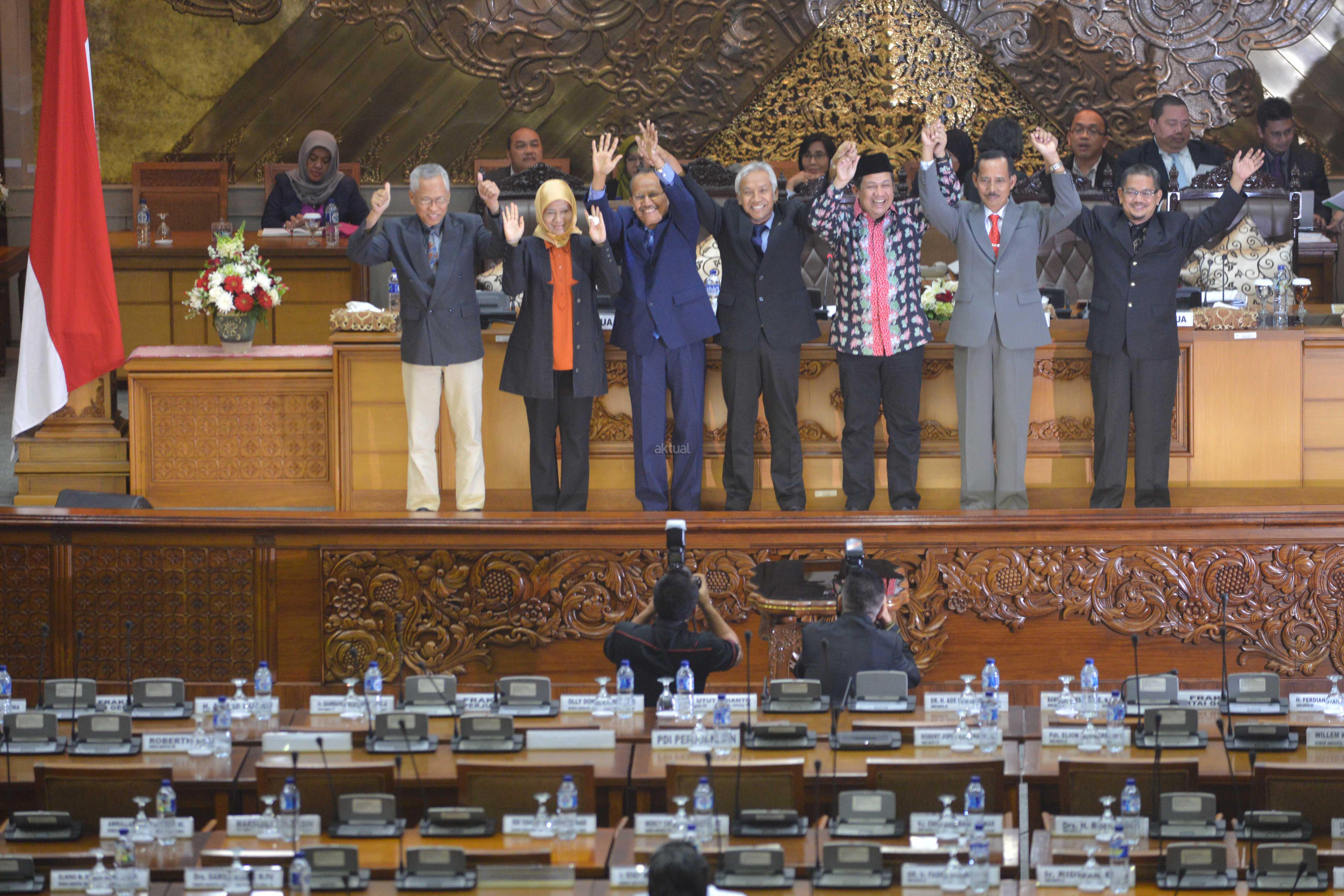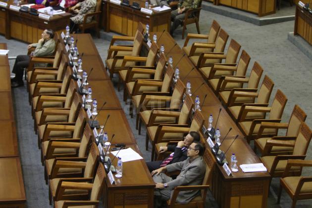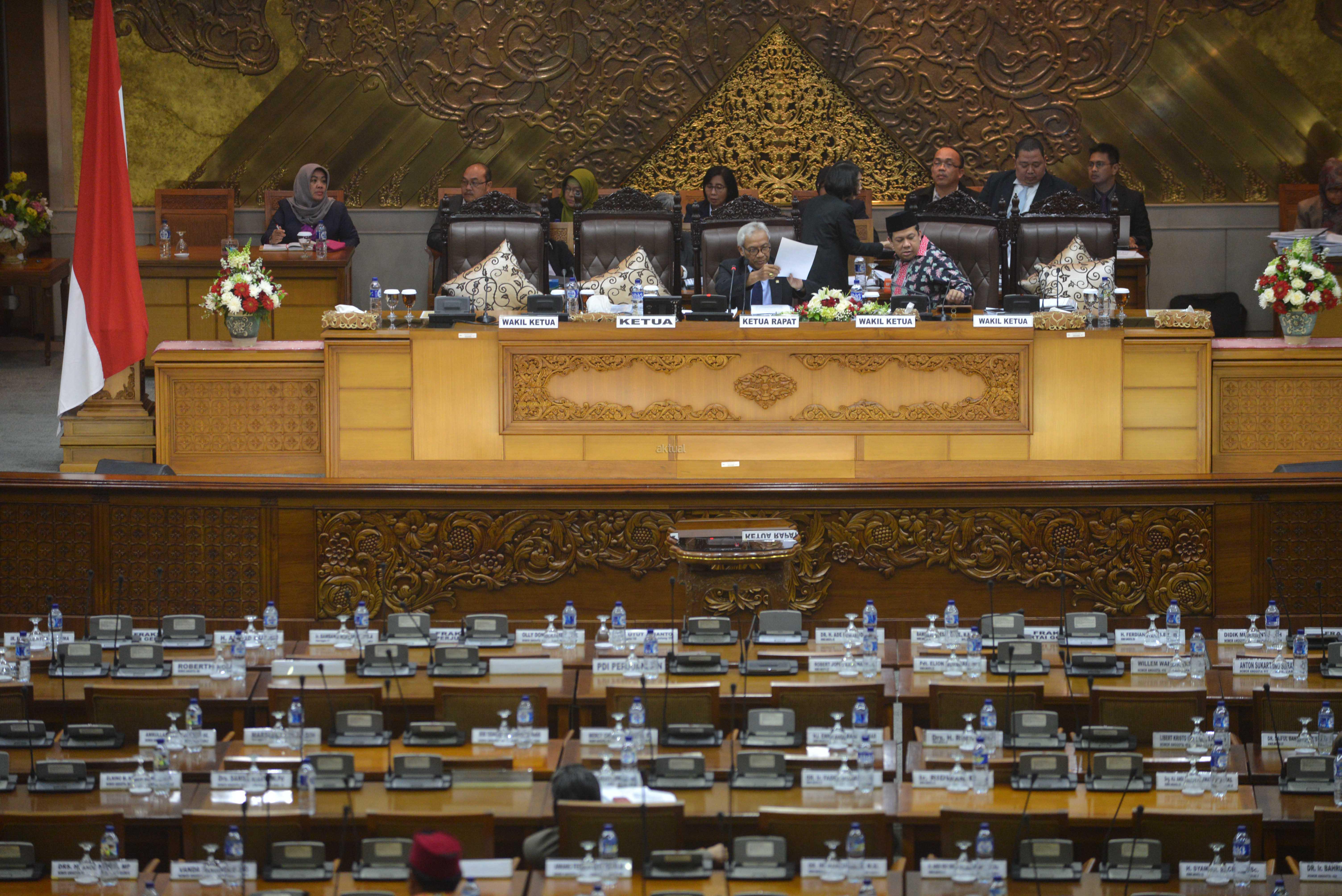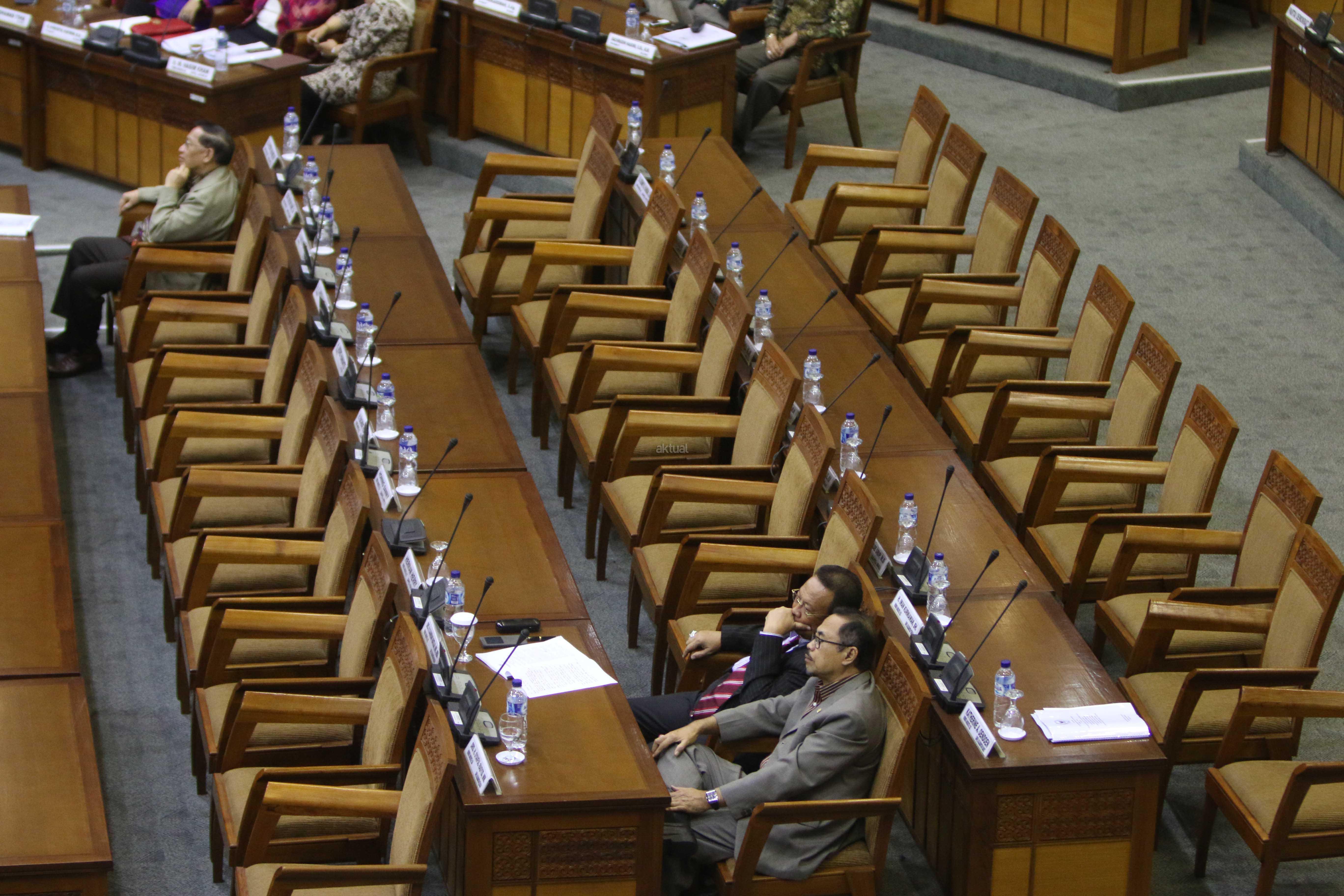 Suasana Sidang Paripurna DPR-RI Ke-8 Masa Persidangan I Tahun Sidang 2015-2016 di Kompleks Parlemen, Senayan, Jakarta, Selasa (20/10). Sidang Paripurna dengan Agenda pengambilan Keputusan RUU Disabilitas, RUU Perlindungan dan Pemberdayaan Nelayan, Pembudidaya Ikan dan Petambak Garam,pengambilan Keputusan bersama DPR dan BPK Soal cara penyerahan dan penyampaian laporan hasil Pemeriksaan BPK RI dan Penetapan Mitra Kerja Komisi II, IV, V, VI DPR.