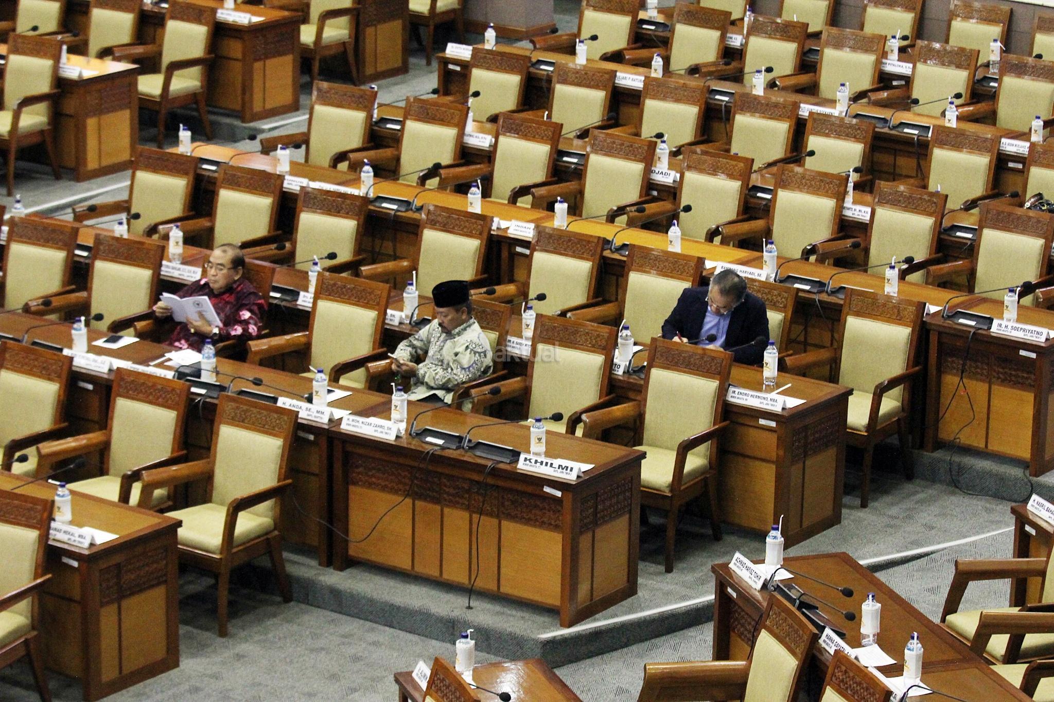 Anggota DPR duduk diantara bangku kosong saat mengikuti Rapat Paripurna, di Gedung Nusantara II, Kompleks Parlemen, Jakarta, Rabu (14/2). Rapat Paripurna ynag diantaranya mendengarkan Laporan Panitia Angket DPR RI Tentang Pelakasanaan Tugas dan Wewenang KPK dan Pidato penutupan sidang tersebut, diikuti kurang dari setengah anggota yang hadir dalam ruangan. AKTUAL/Tino Oktaviano