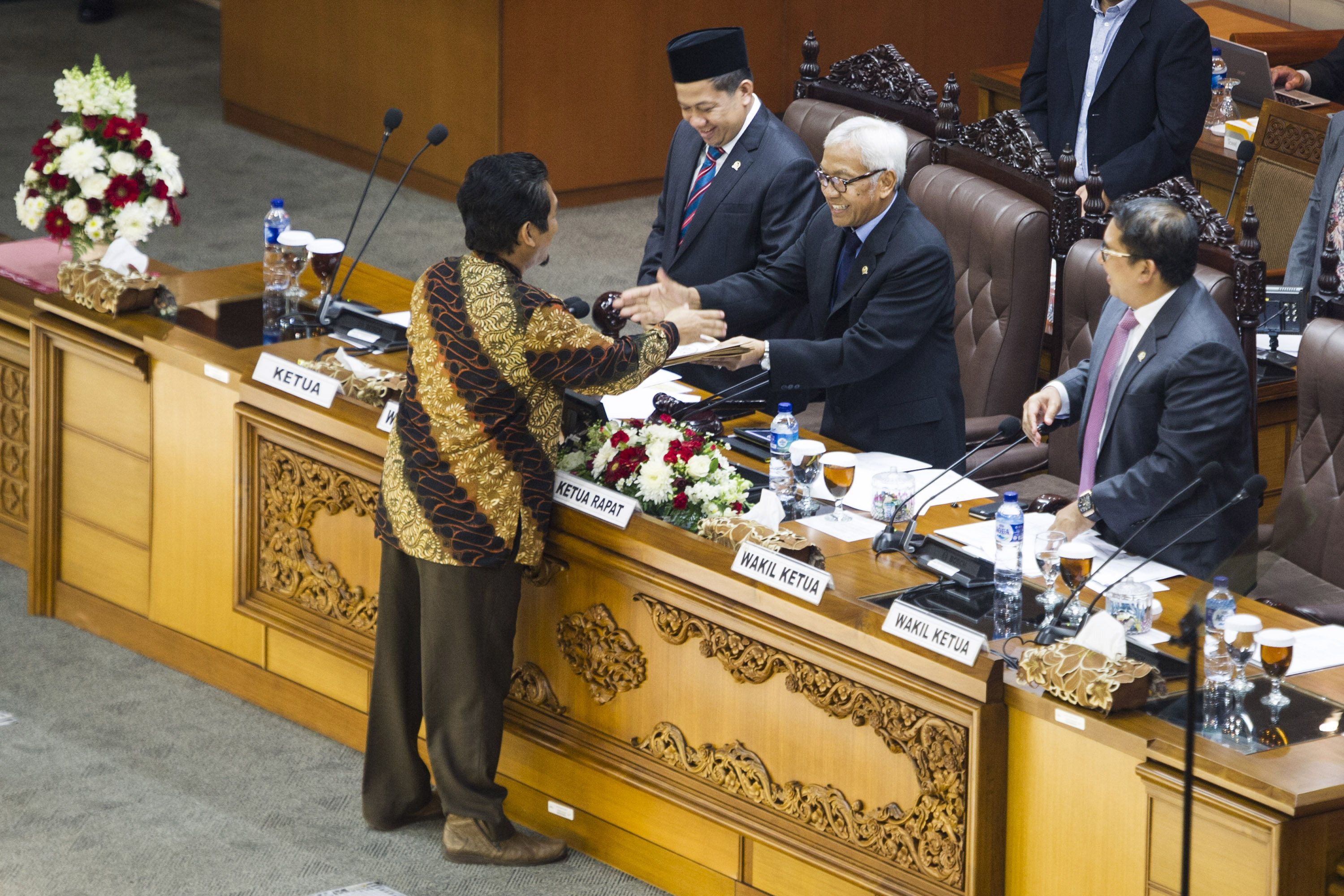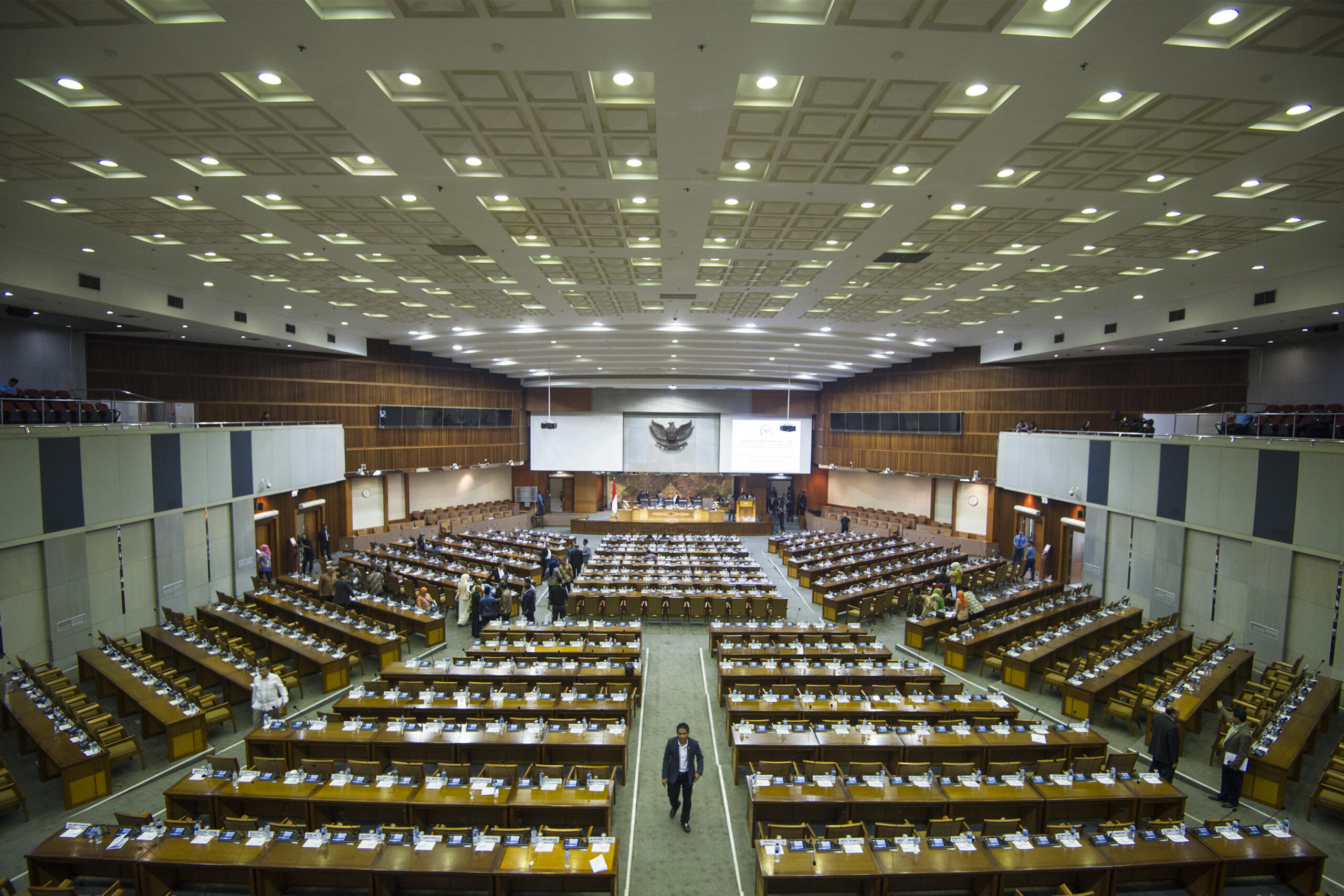 Anggota DPR meninggalkan ruangan usai mengikuti Rapat Paripurna ke-26 DPR dengan agenda Pidato Pembukaan Masa Persidangan V Tahun Sidang 2015-2016 di Kompleks Parlemen, Senayan, Selasa (17/5). Masa Persidangan V Tahun Sidang 2015-2016 akan berlangsung dari 17 Mei hingga 28 Juli 2016. ANTARA FOTO/Sigid Kurniawan/pd/16.