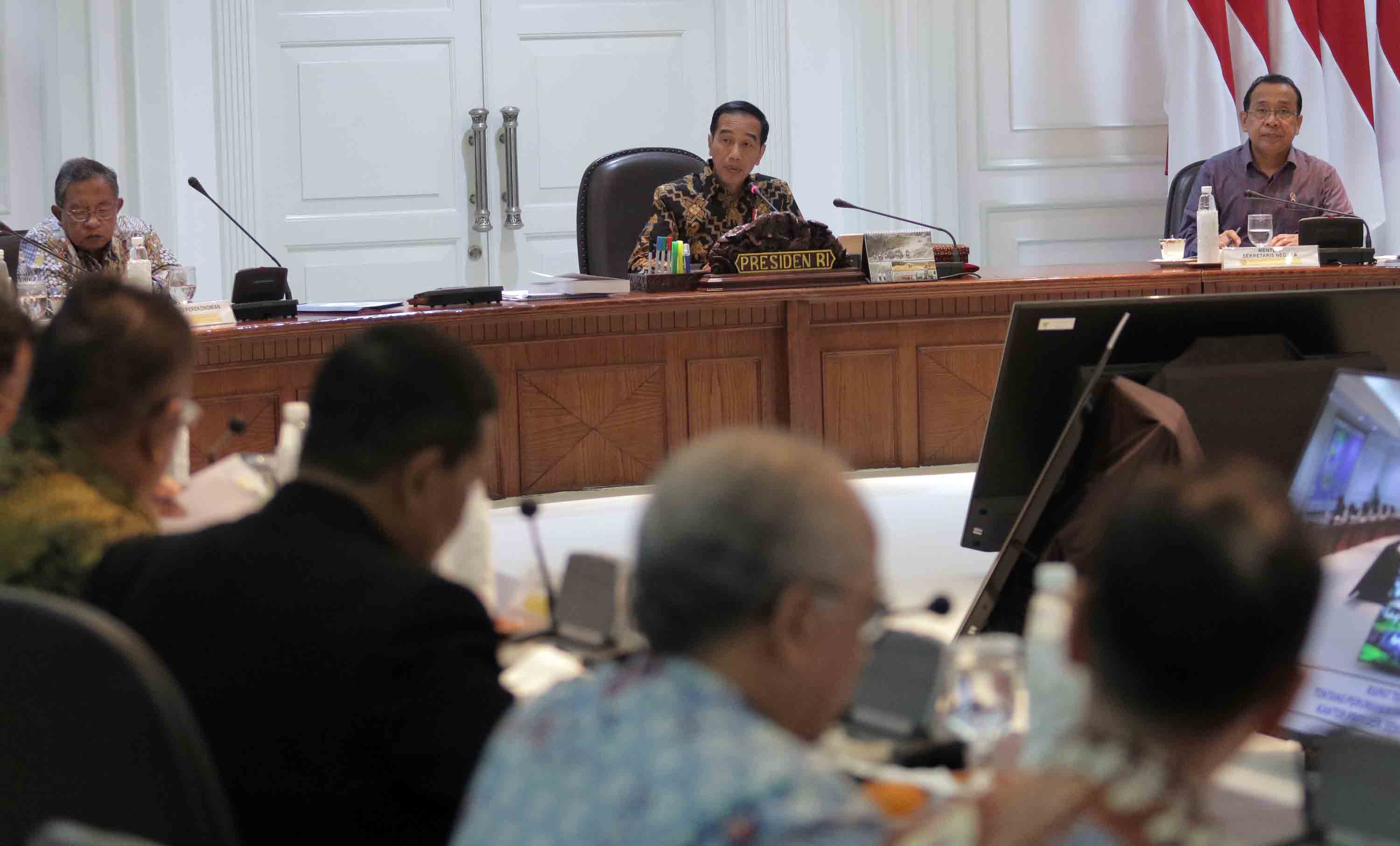 Presiden RI Joko Widodo memimpin rapat terbatas membahas percepatan pengadaan rumah tinggal bagi aparatur sipil negara (ASN/PNS), TNI dan Polri di Istana, Senin (16/4). Sebanyak 945 ribu ASN, 275 ribu prajurit TNI dan 360 ribu anggota Polri yang belum memiliki rumah bersifat permanen. Hadir dalam acara Ketua Dewan Komisioner OJK dan sejumlah Dirut Bank BUMN, Dirut Bank bjb Ahmad Irfan, Dirut Bank DKI Kresno Sediarsi. AKTUAL/Istimewa
