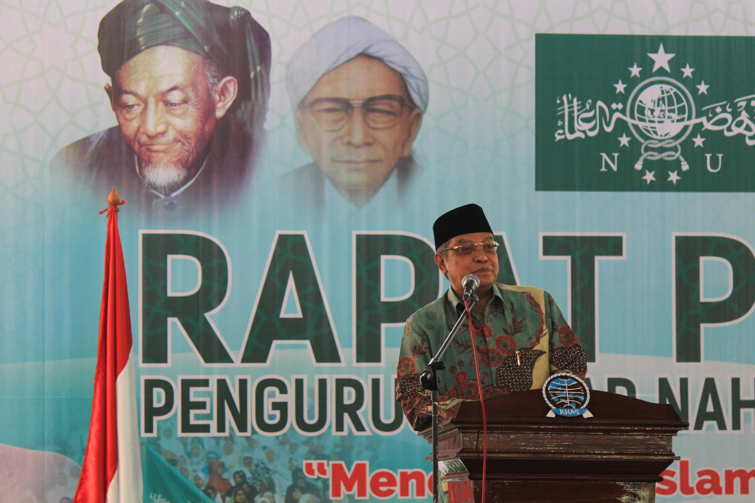 Ketua Umum PBNU KH Said Aqil Said Aqil Siradj menyampaikan pidatonya saat pembukaan Rapat Pleno PBNU di Pondok Pesantren Kempek, Cirebon, Jawa Barat, Minggu (24/7). Rapat Pleno bertema Menguatkan Islam Nusantara Menuju Kemandirian Ekonomi Warga tersebut berlangsung hingga 25 Juli 2016. ANTARA FOTO/Dedhez Anggara/kye/16.