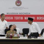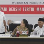 Menko PMK Puan Maharani didampingi Mensos Agus Gumiwang, Mendikbud Muhadjir Effendy dan Gubernur NTB Zulkieflimansyah saat rapat tingkat menteri di kantor Kemenko PMK, Jakarta, Senin (12/11/2018). Rapat tersebut membahas soal Percepatan Pemulihan Pasca Bencana Gempa Bumi Prov. NTB serta Evaluasi Sosialisasi Penyaluran Bantuan dan Jaminan Sosial (KIP,KIS, PKH dan Bansos Pangan). AKTUAL/Tino Oktaviano