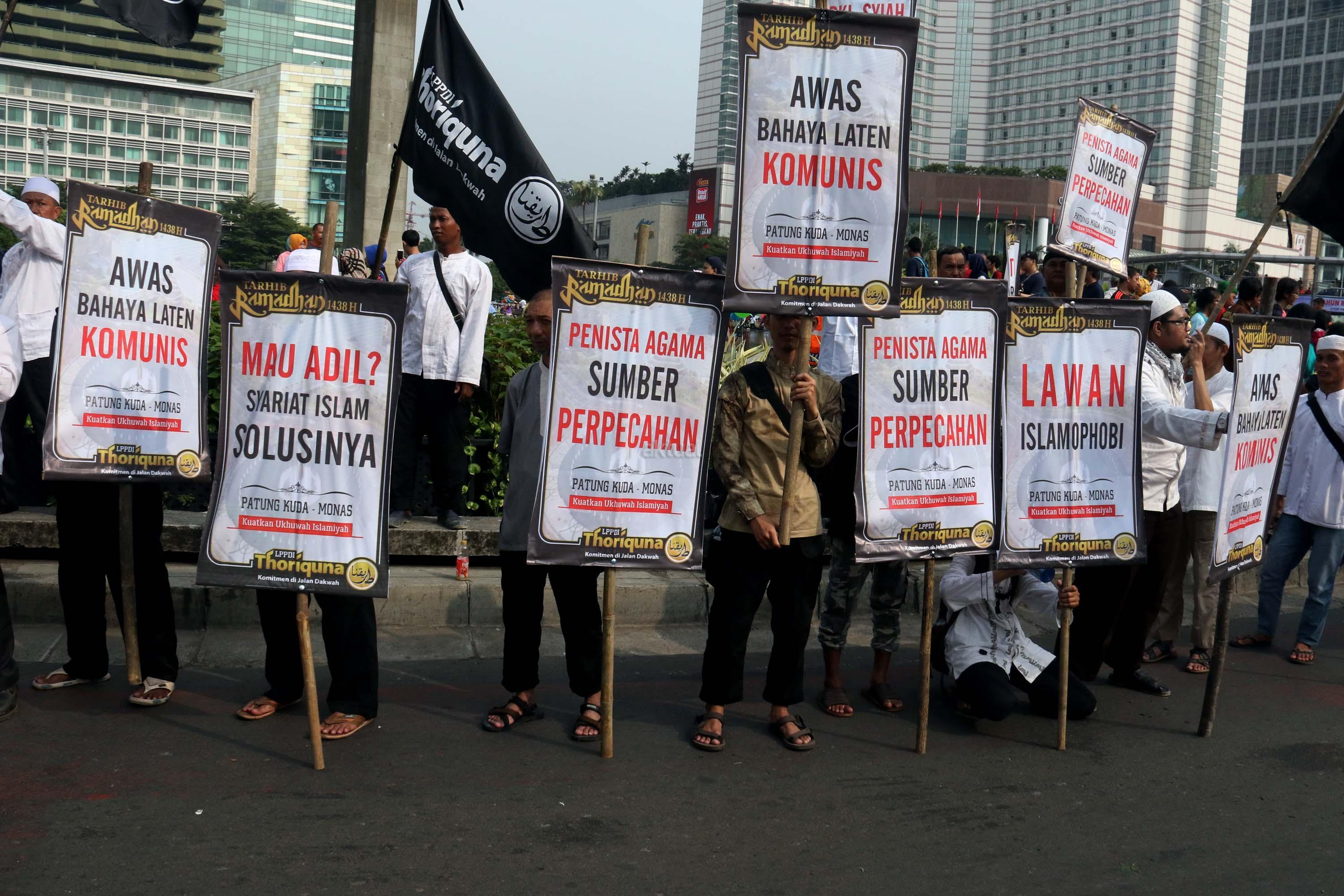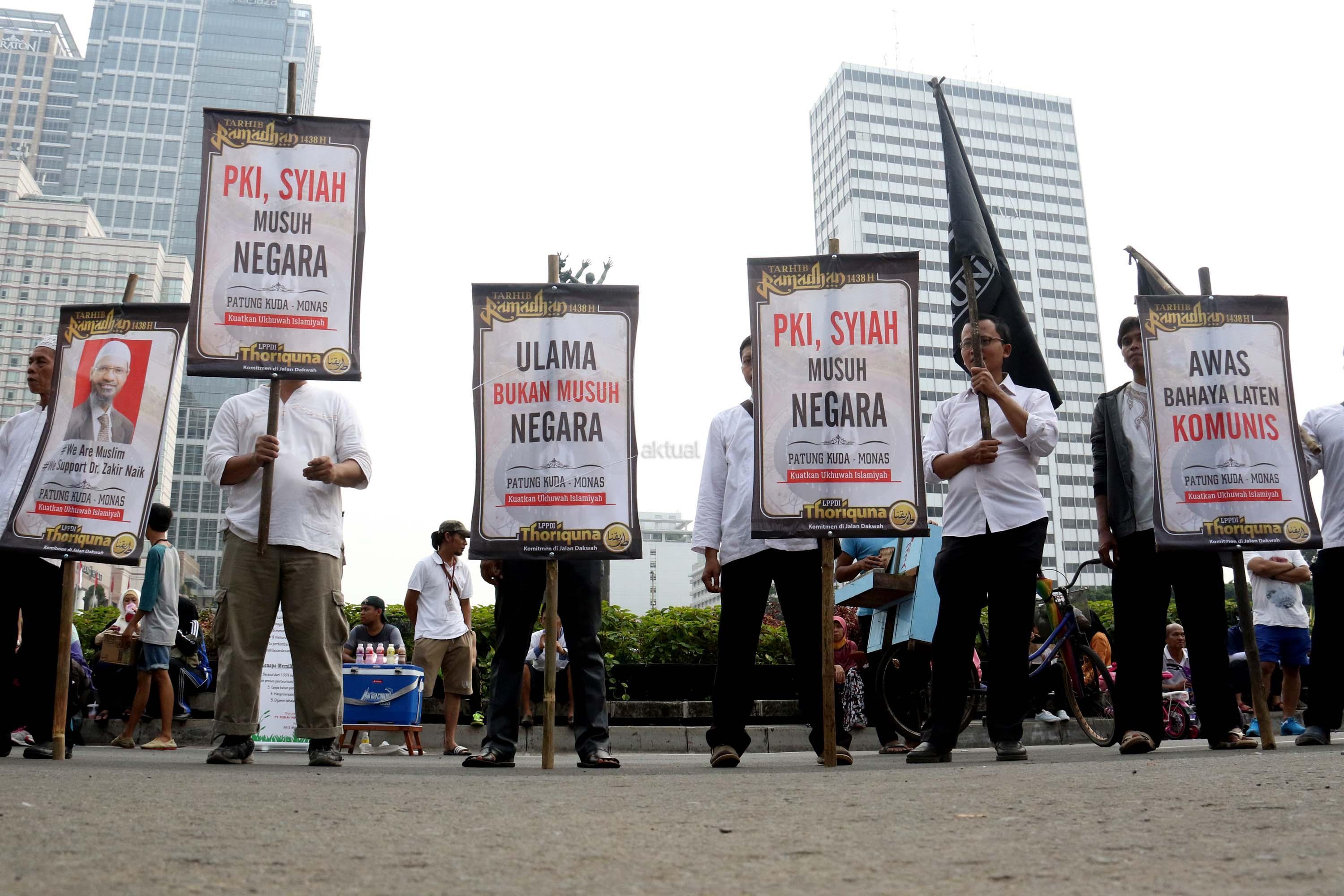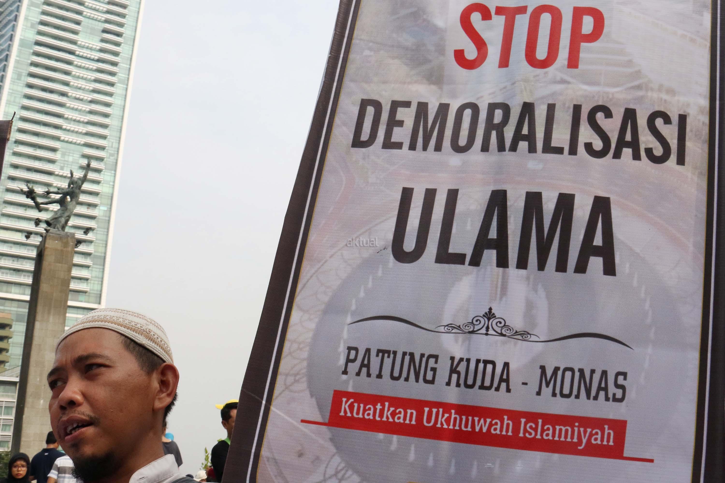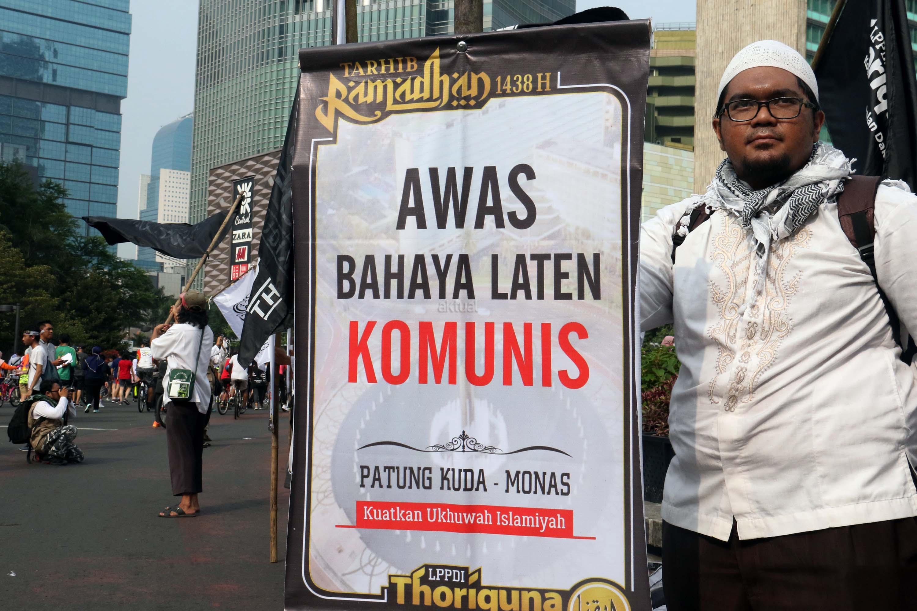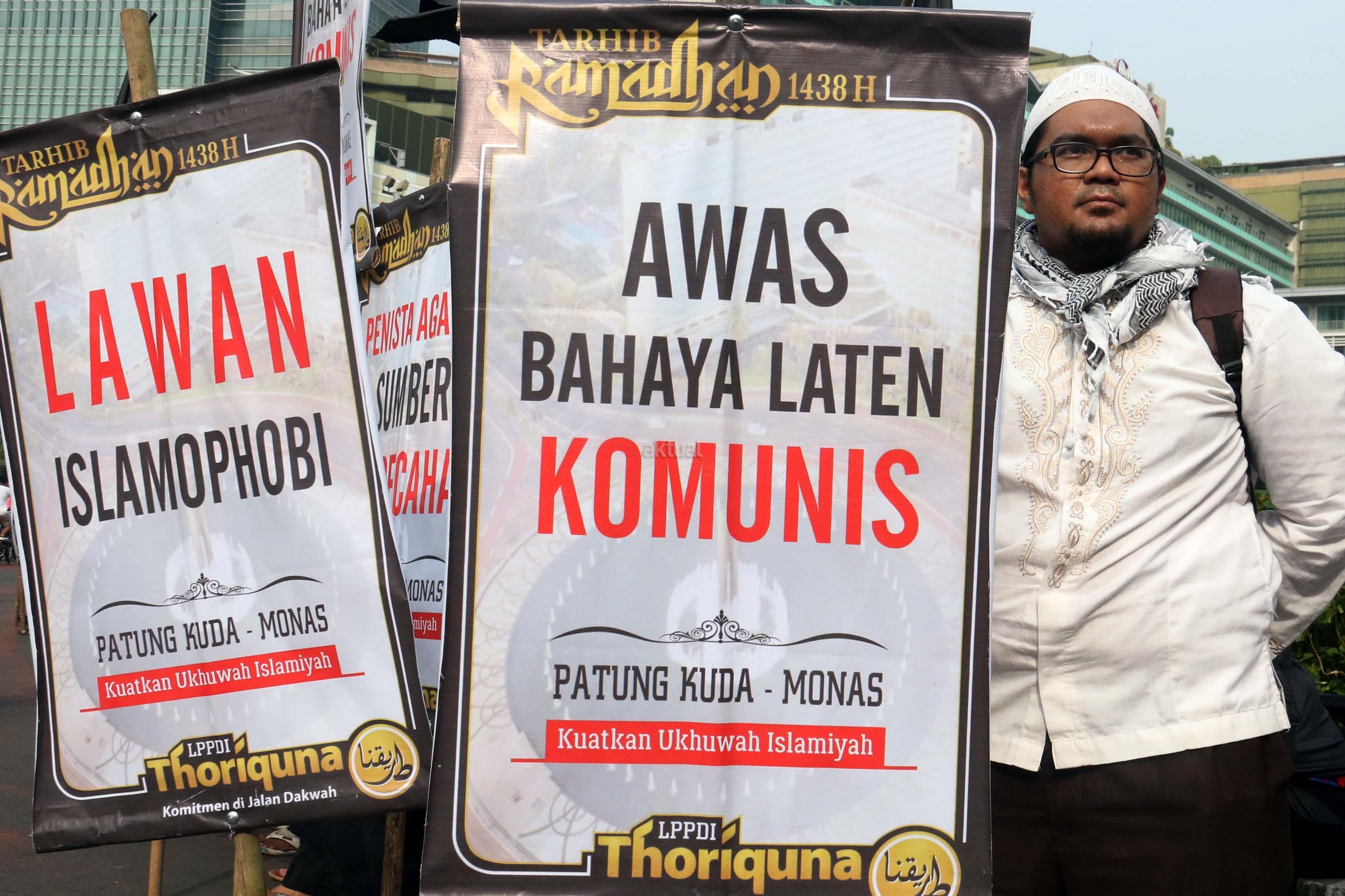 Ratusan masa yang tergabung dalam LPPDI Thoriquna menggelar Tarhib Ramadhan di area Car Free Day, Jakarta, Minggu (21/6/2017). Dalam aksi Tarhib Ramadhan LPPDI Thoriquna meminta kepada pemerintah menjauhi sikap Islamophobia, jangan menganggap Islam itu buruk, terutama juga kepada Ulama dan Stop Demoralisasi Ulama. AKTUAL/Munzir