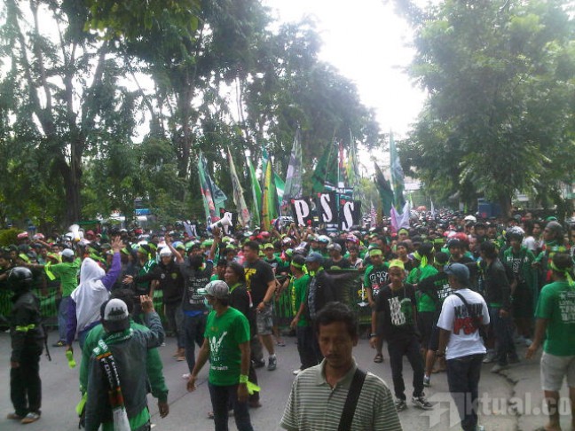 Kedatangan suporter ke Pengadilan Negeri guna menemani Komisaris PT Persebaya Indonesia, Saleh Ismail Mukadar, guna mendaftarkan pekara gugatan perdata terhadap PT Mitra Muda Inti Berlian, yang mengelolah Persebaya Surabaya yang berlaga di Liga Super Indonesia.