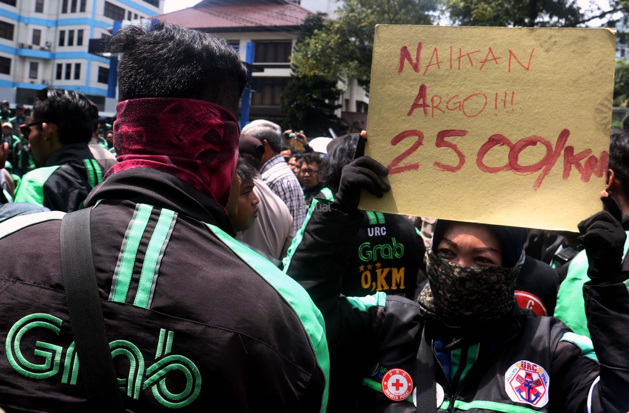 Dalam aksinya para driver Grabike meminta perusahaan menaikkan tarif dari Rp 1.500 per kilometer menjadi Rp 2.500 per kilometer, Forum Gabungan GrabBike Bersatu juga meminta perusahaan mempekerjakan lagi driver GrabBike yang diputus kemitraannya karena aksi one day no bit atau tidak beroperasi pada tanggal 16 Desember 2016 lalu. AKTUAL/Munzir